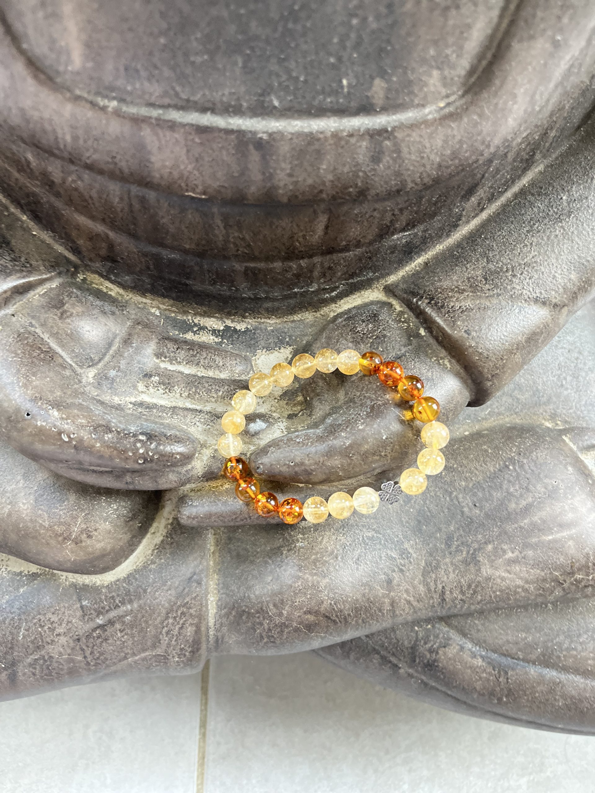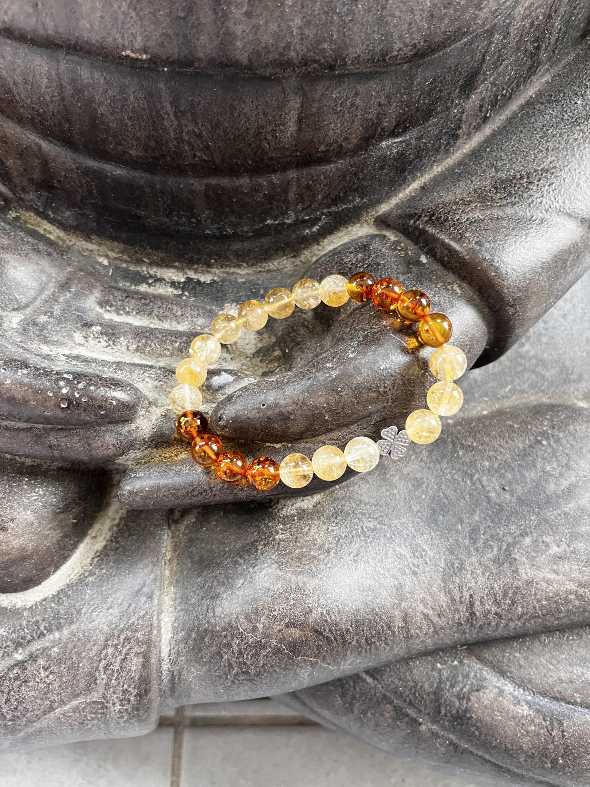 Alliez la puissance solaire de la citrine à l’énergie chaleureuse de l’ambre pour un bracelet à haute vibration. Cette combinaison unique favorise la purification énergétique tout en rechargant votre esprit et vos émotions.