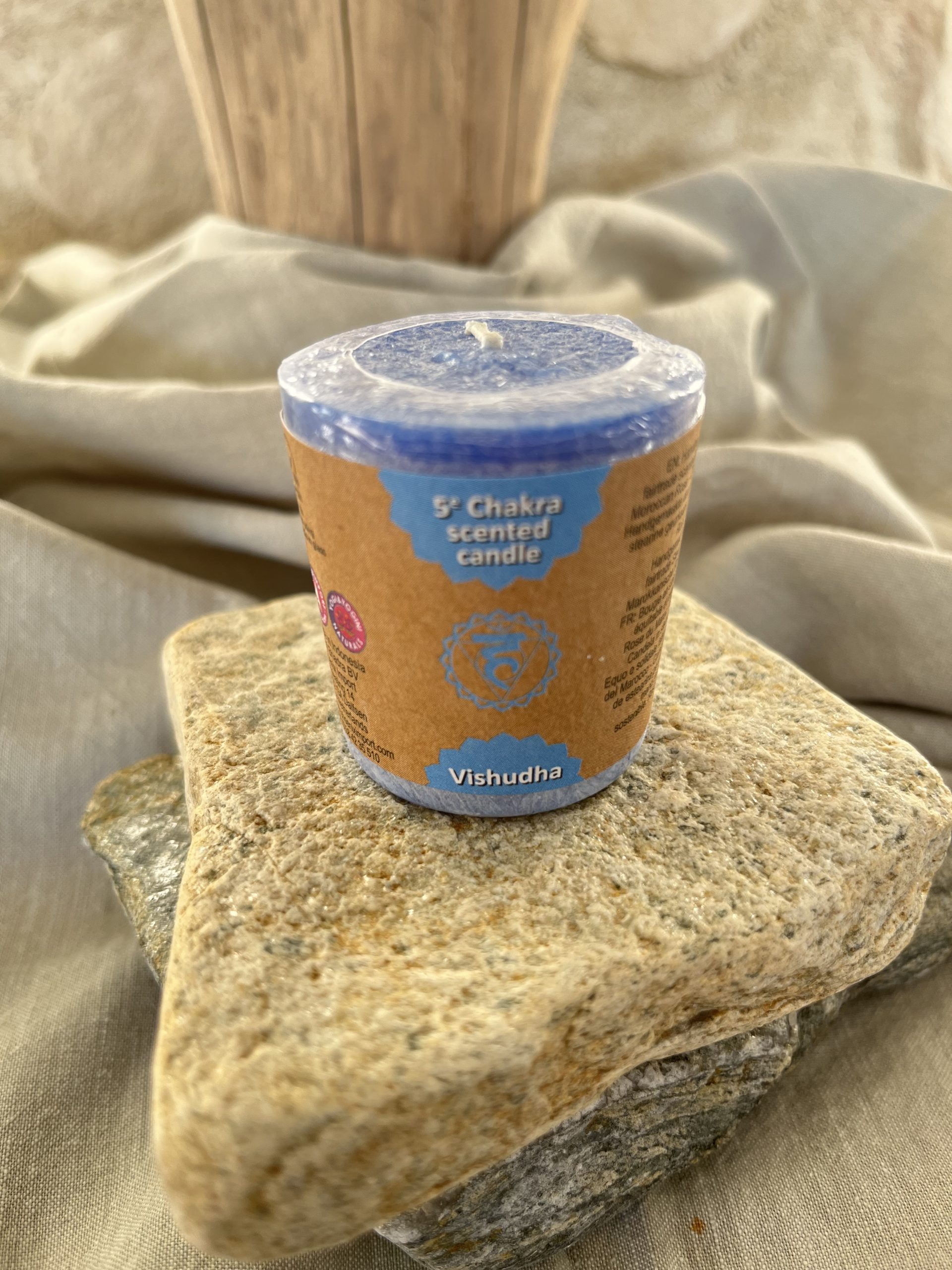 – Vishudha – Chakra 5 (bleu) Parfum Rose du Maroc, Camomille.