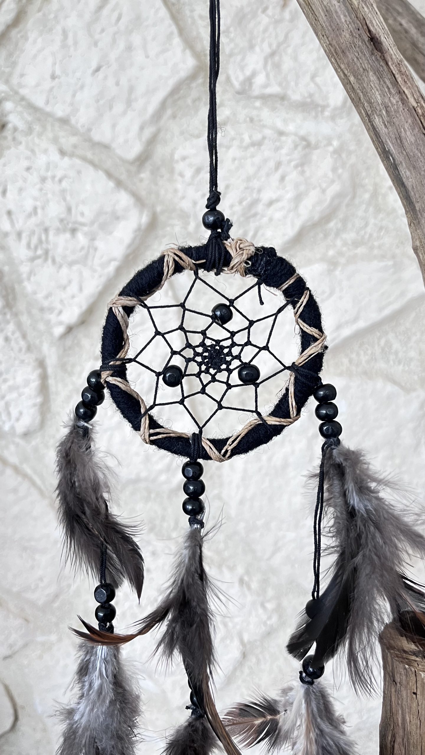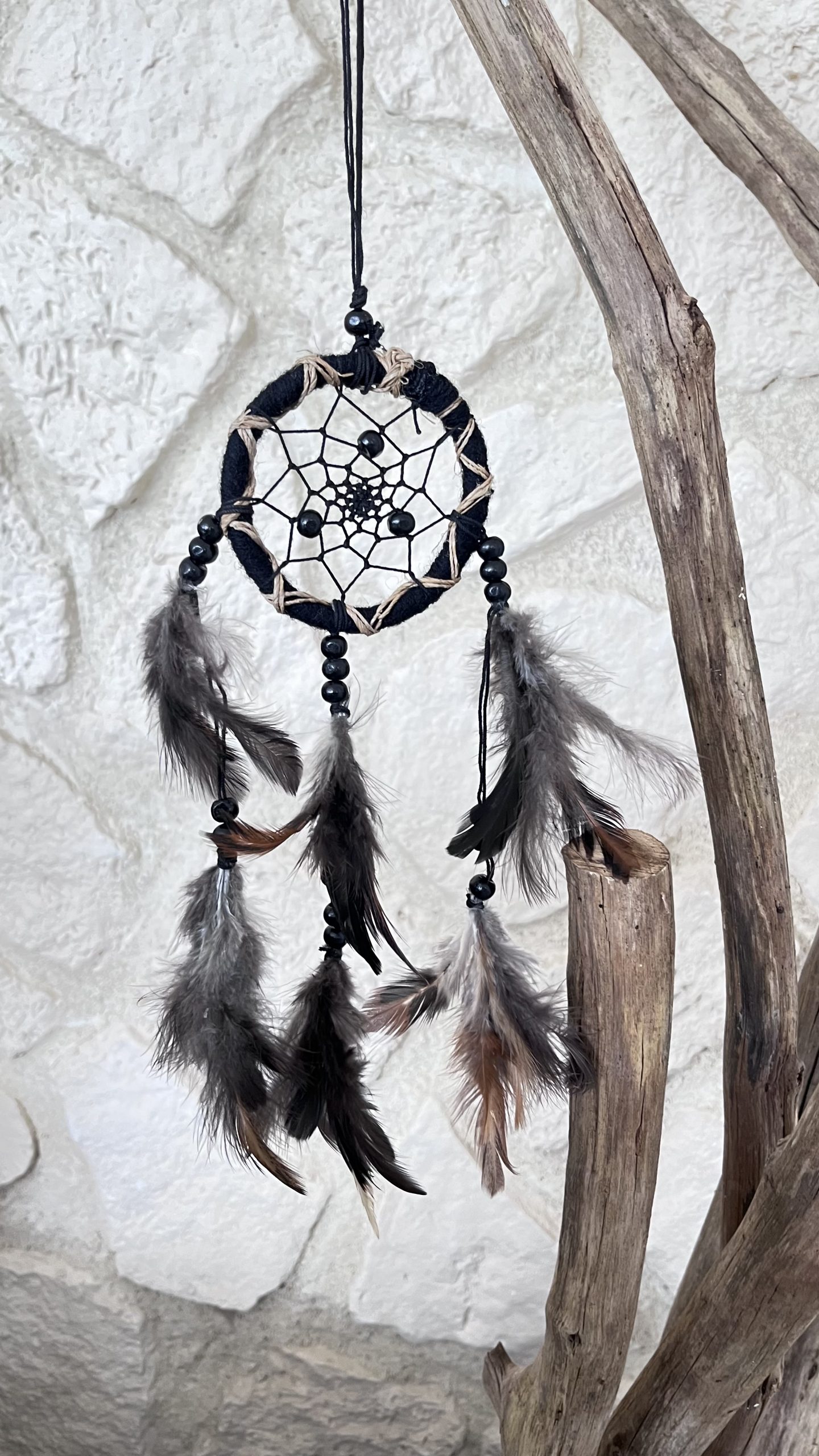 Attrape-rêves noir avec plumes