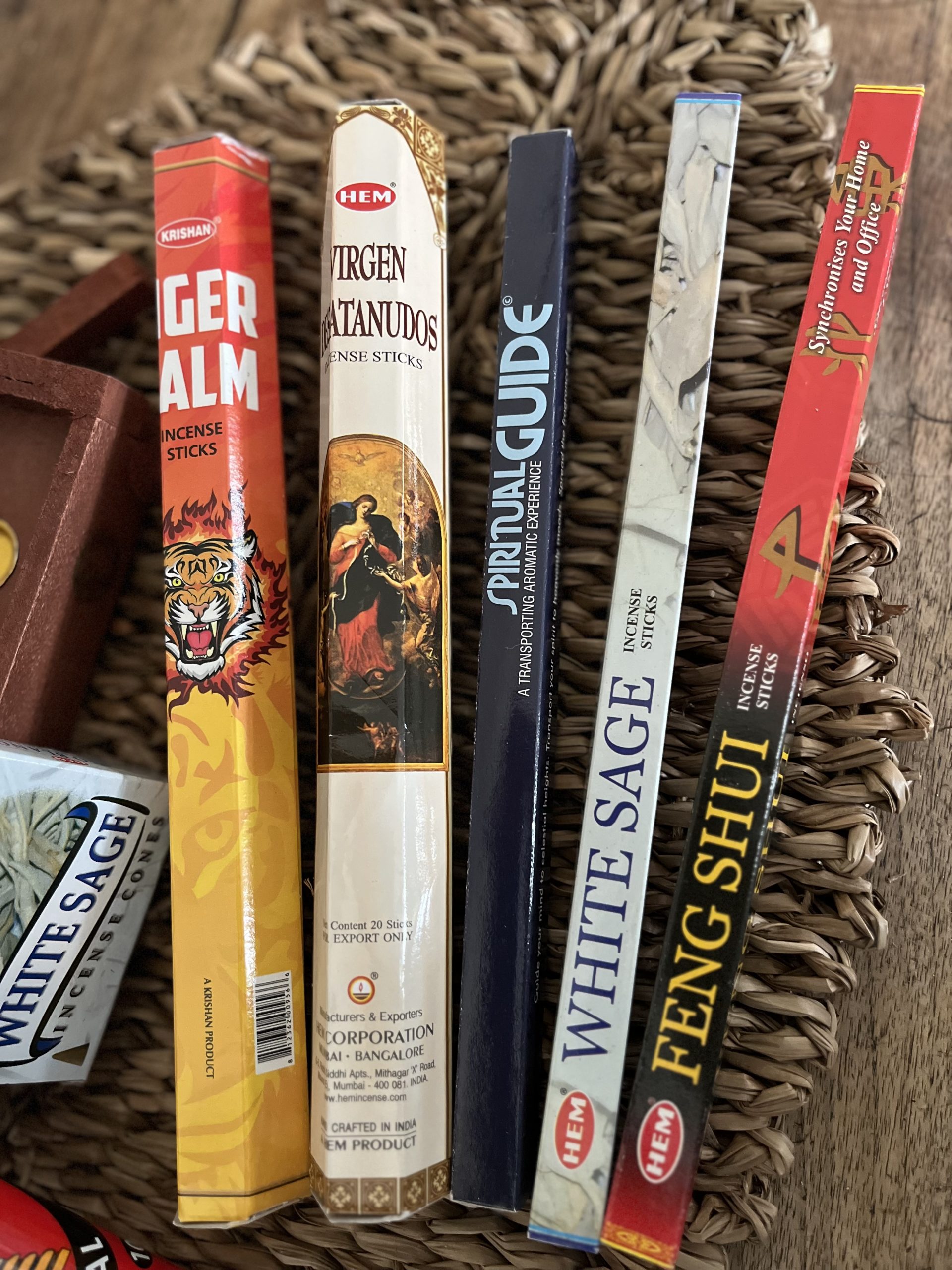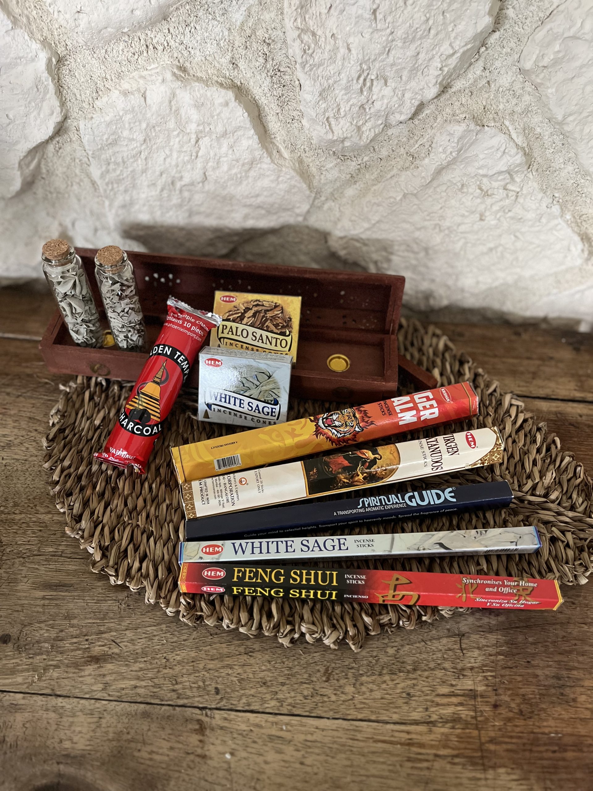 – 3 boîtes d’encens de 8 bâtonnets : spiritual guide, feng Shui, sauge blanche,