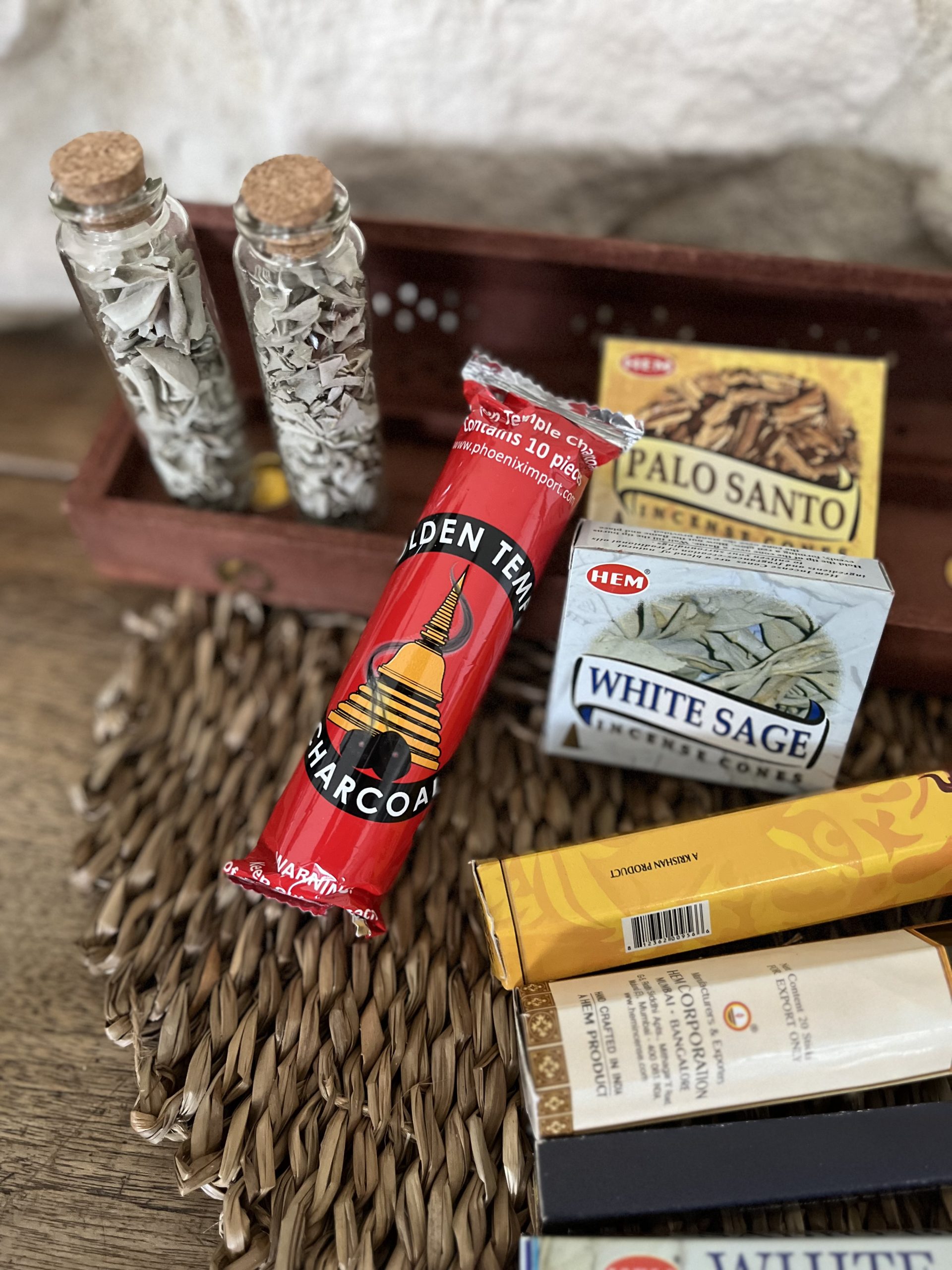 – 2 boîtes d’encens de 20 bâtonnets : baume du tigre et Marie qui défait les noeuds,
