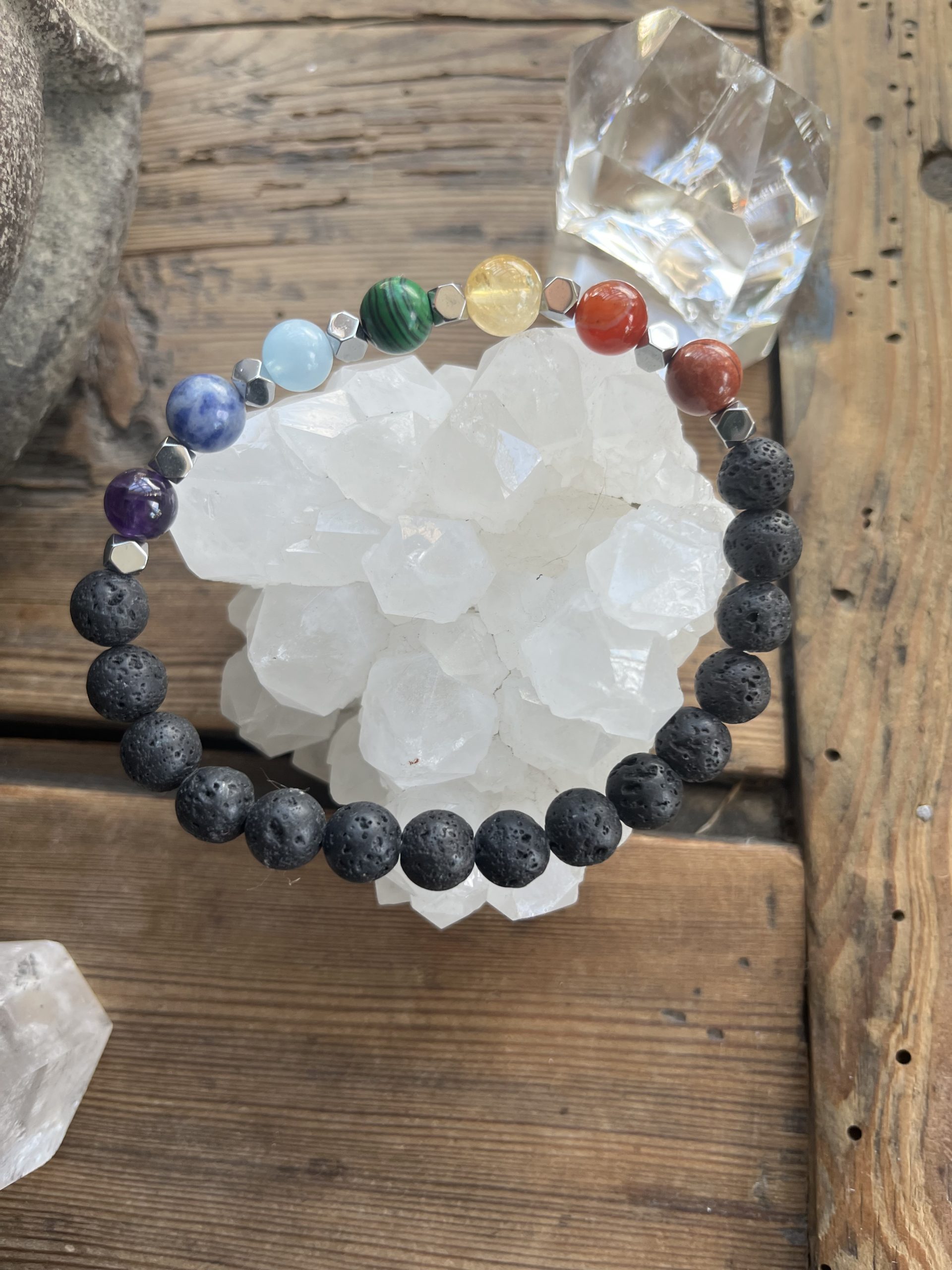 l’améthyste, sodalite, aiguë marine, malachite, citrine, cornaline, jaspe rouge et pierres de lave. Taille 17, 18 ou 19 cm.