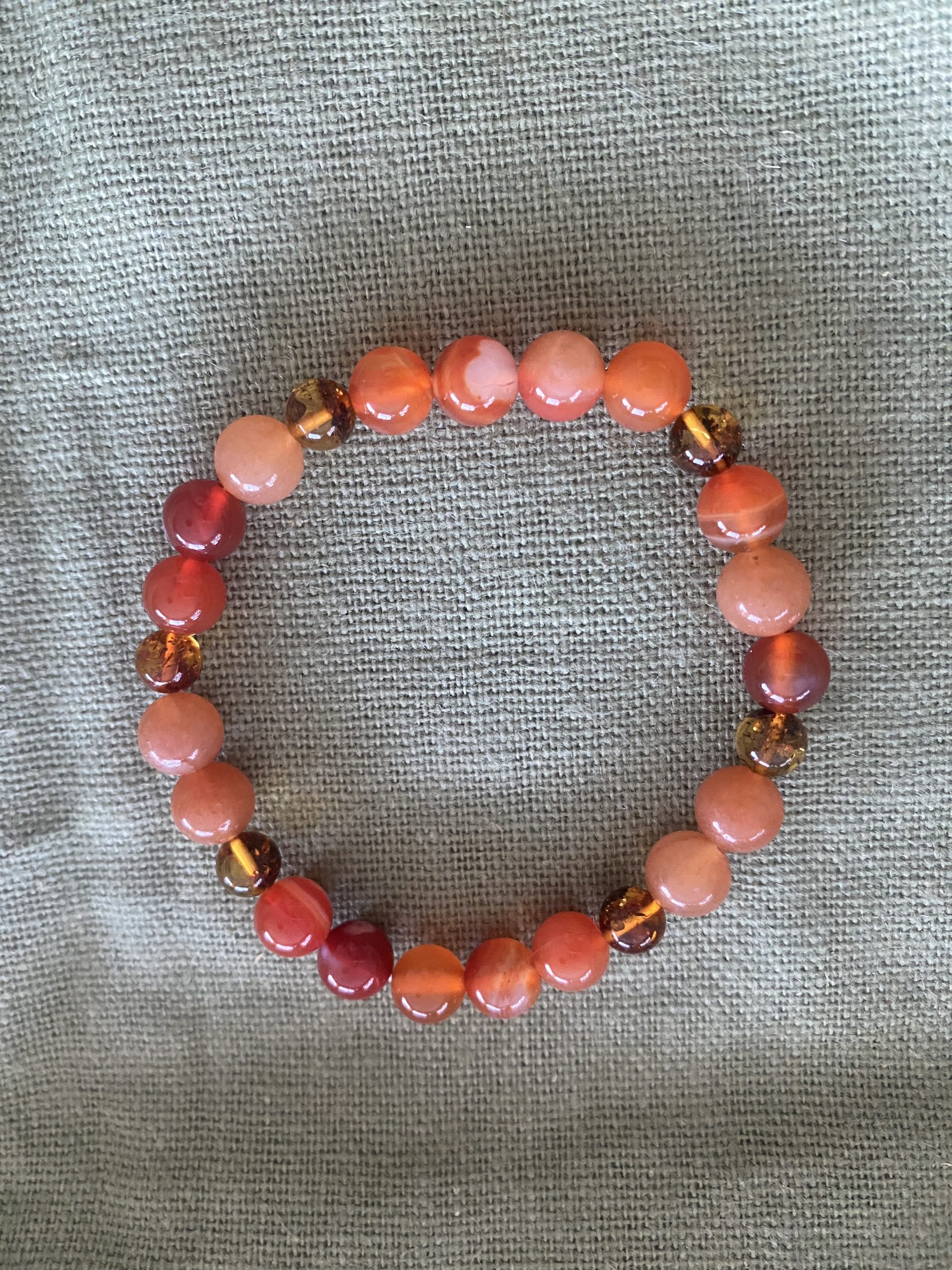 Composé de Cornaline, Aventurine Orange et Ambre, il diffuse une énergie douce, chaleureuse et rayonnante, idéale pour les femmes qui souhaitent retrouver leur élan vital, leur créativité et une relation plus apaisée à leurs émotions.