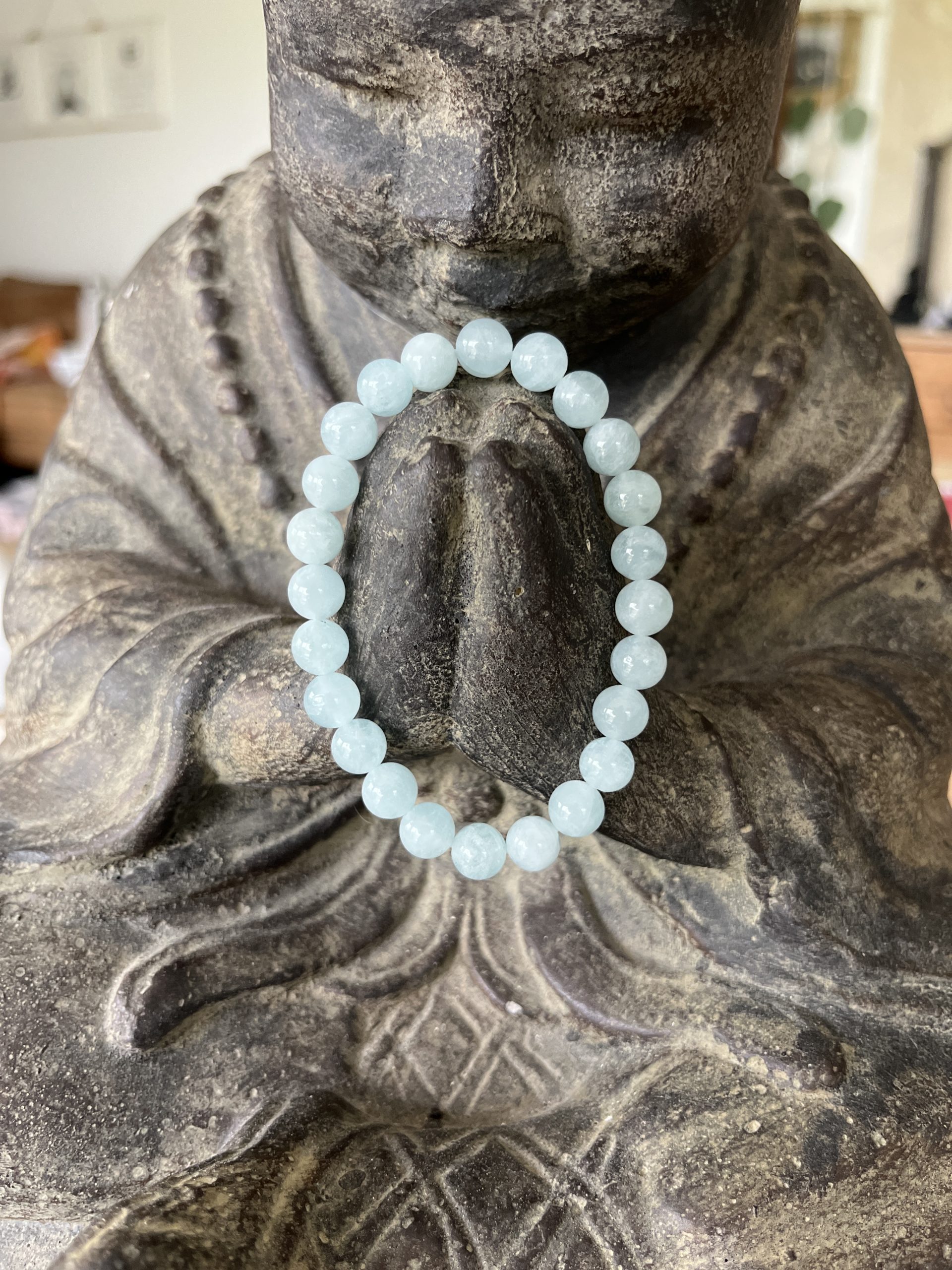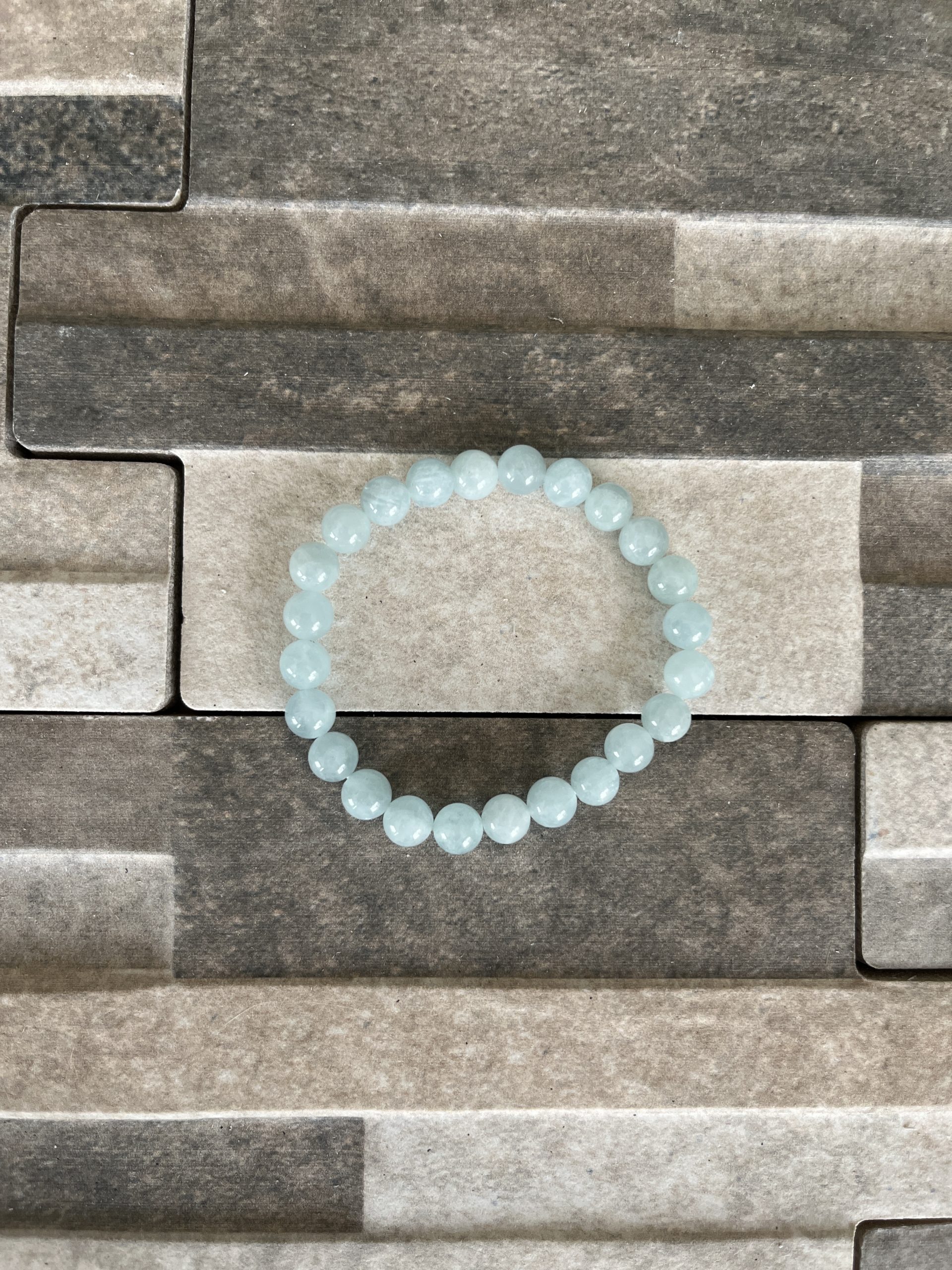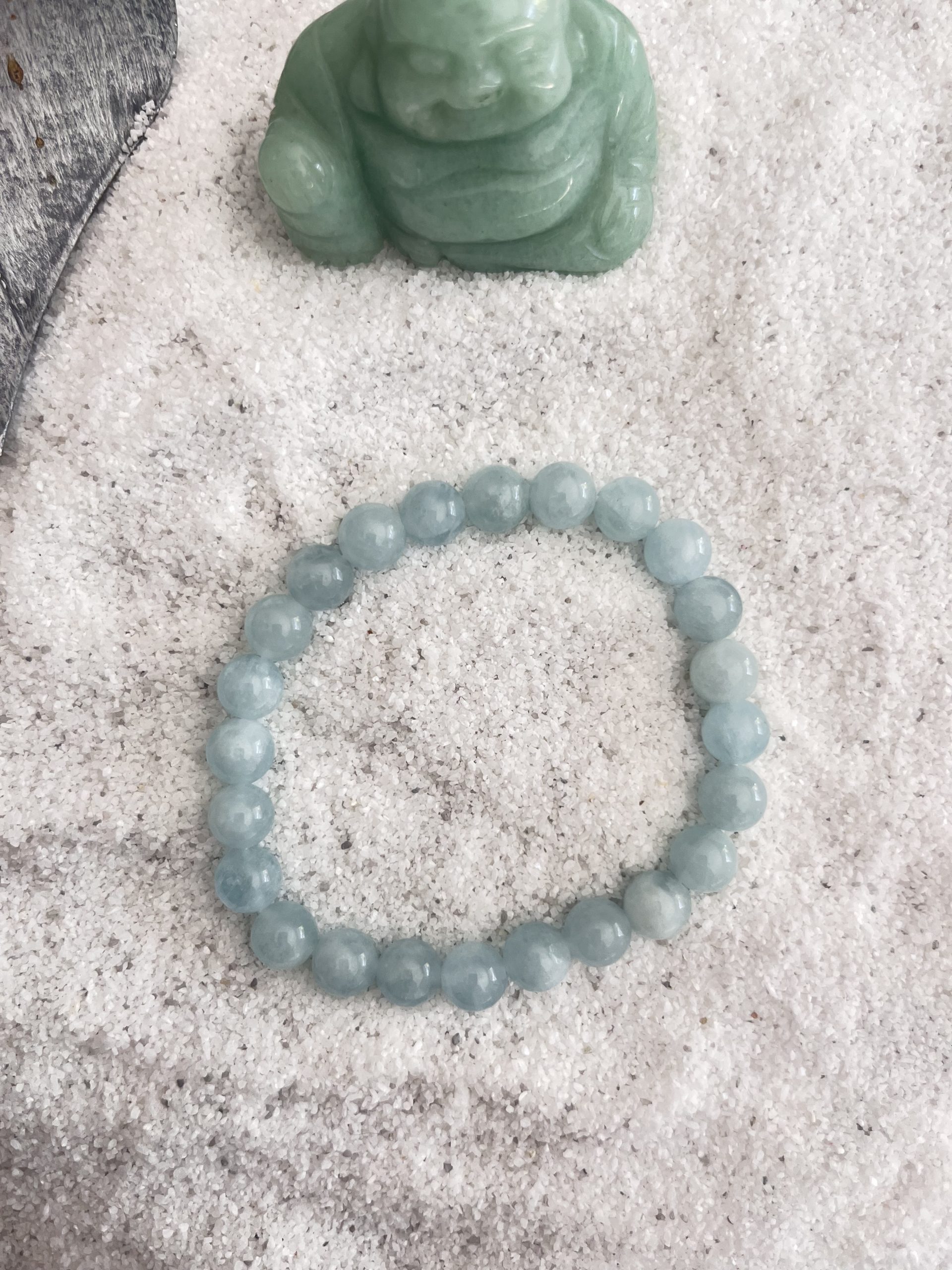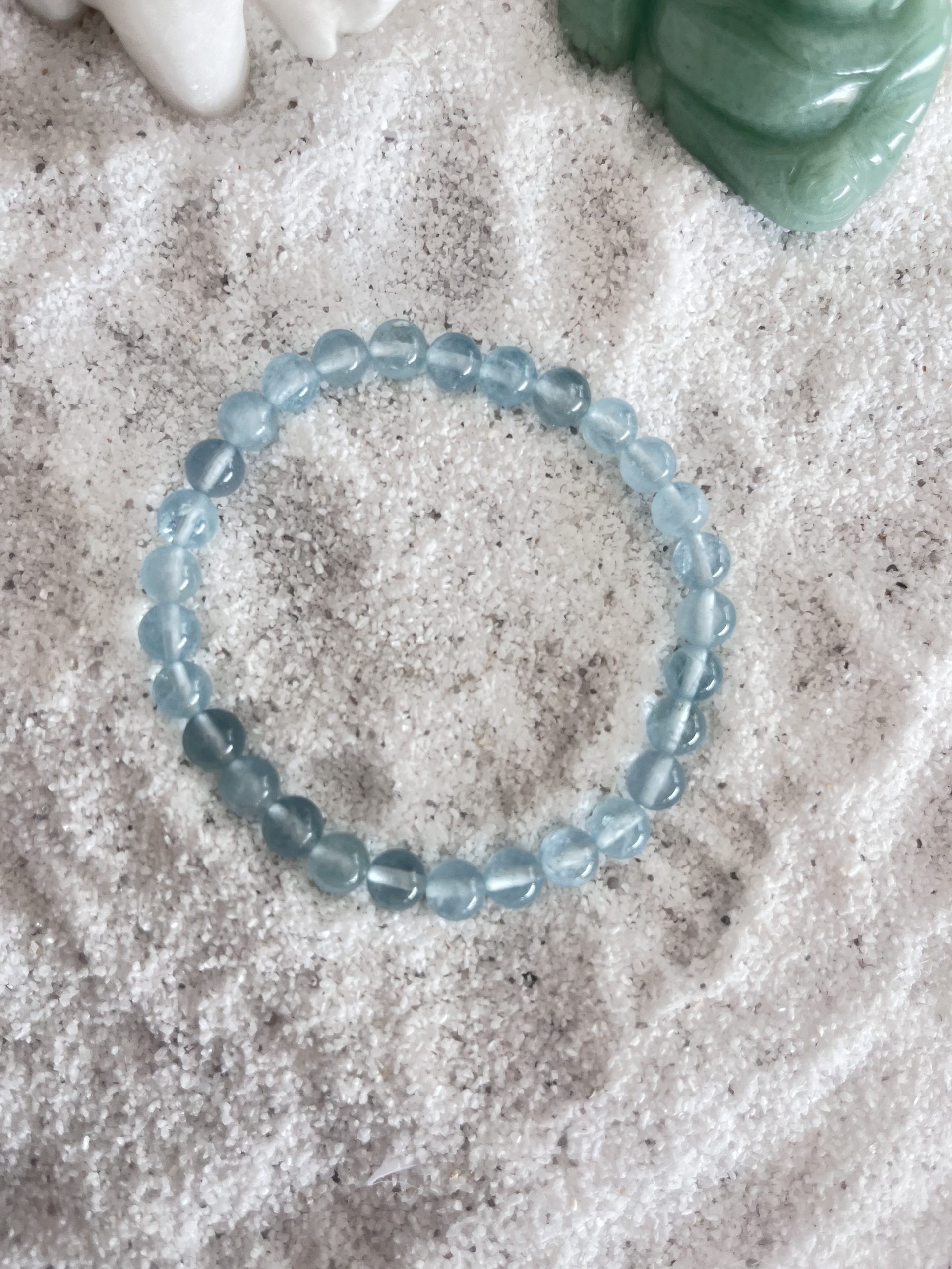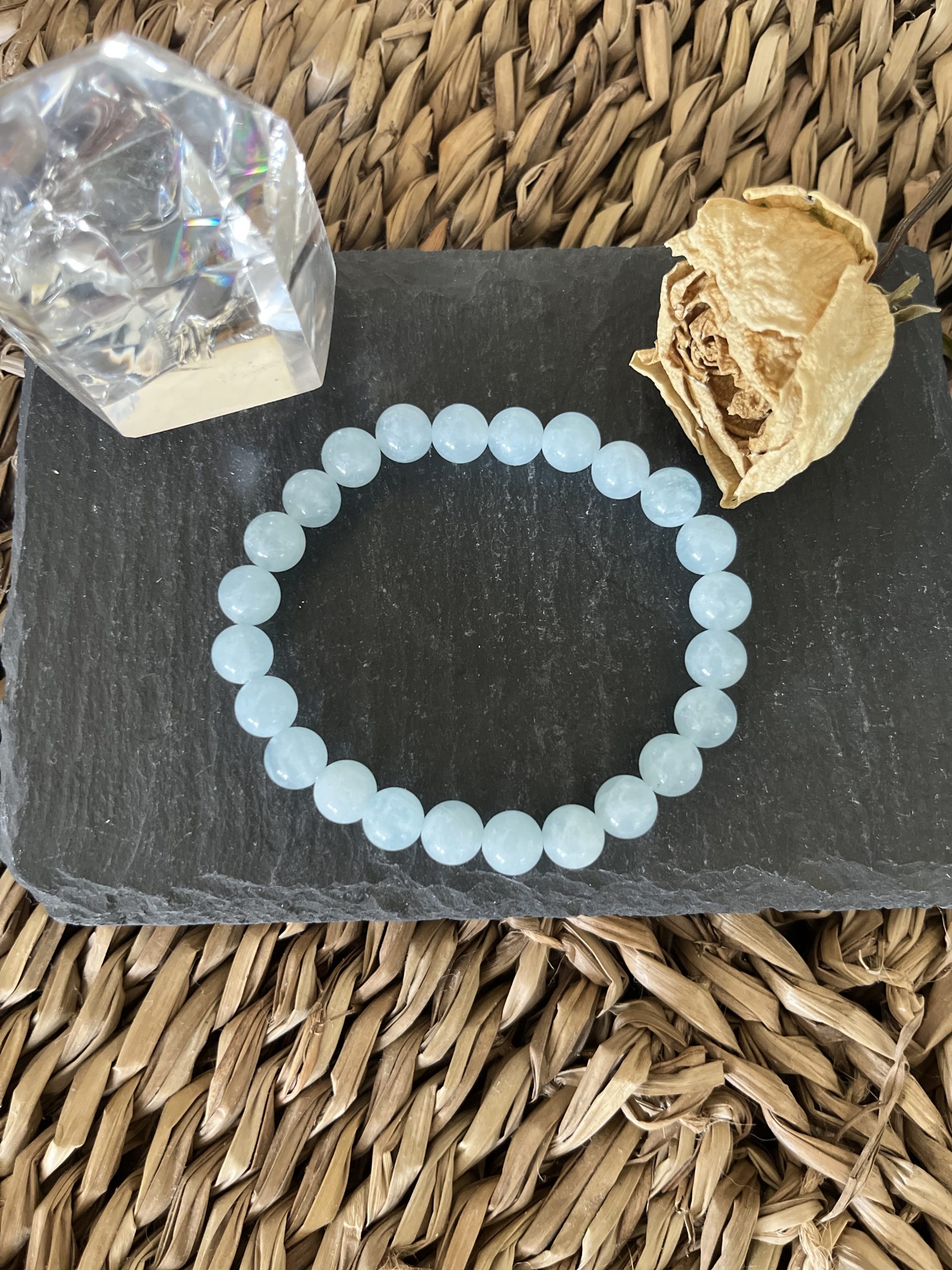 Bracelet en aigue-marine fabriqué par plume étoilée avec des pierres naturelles de 7 ou 8 mm.