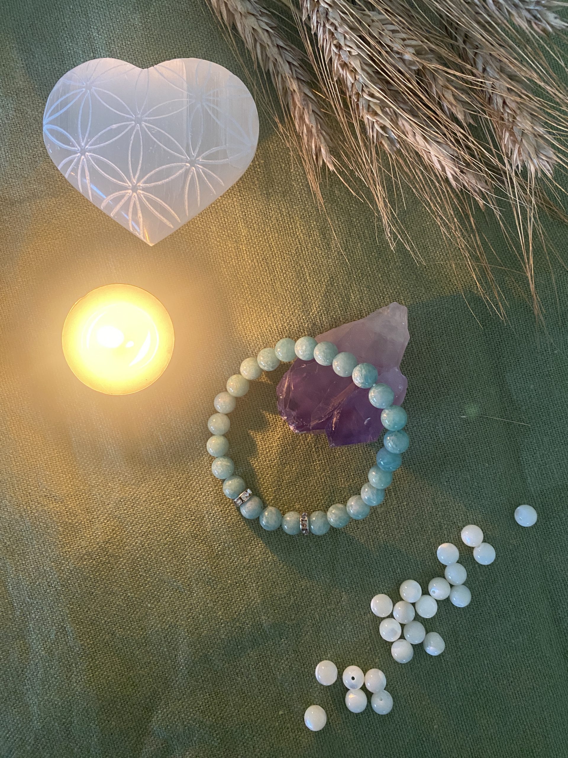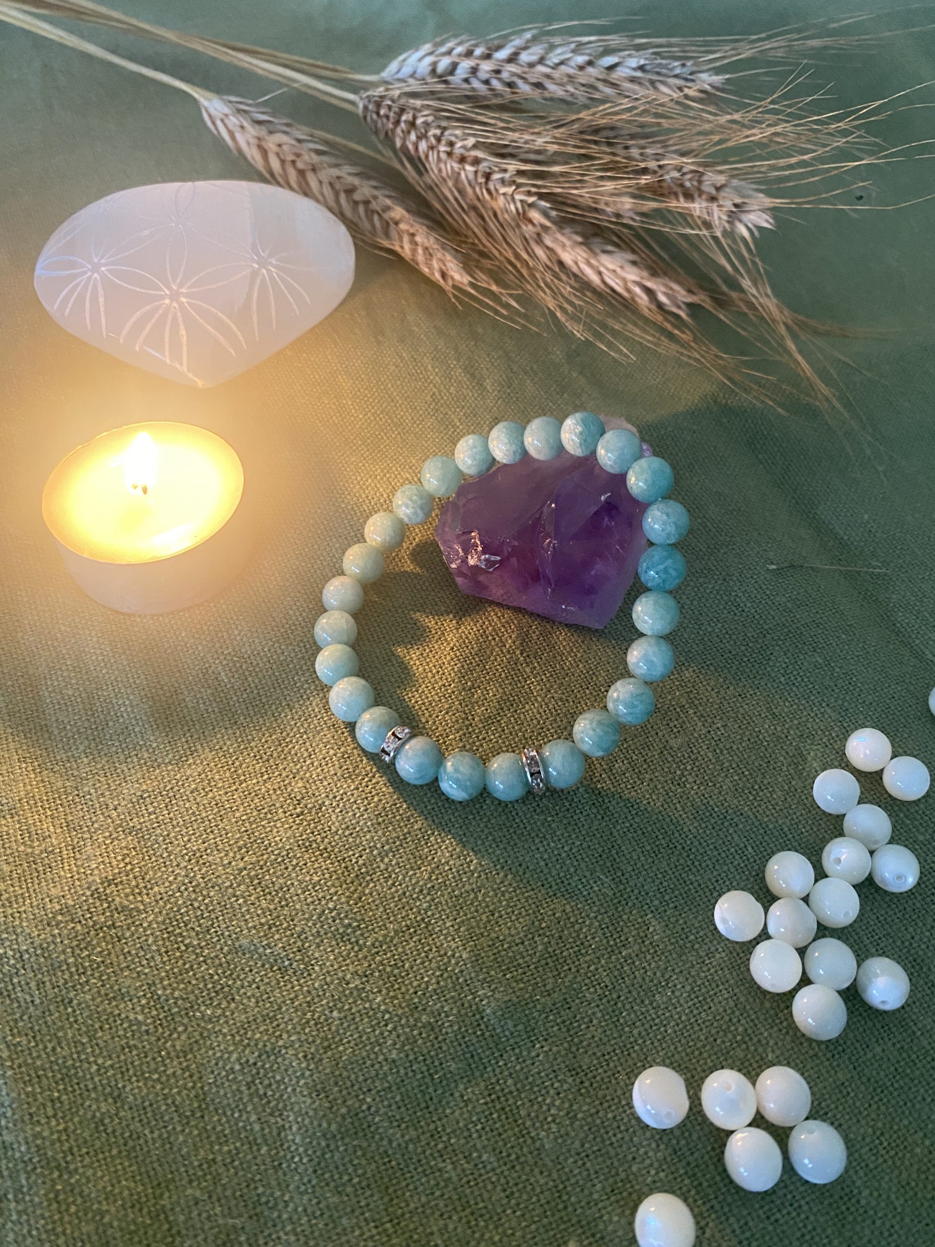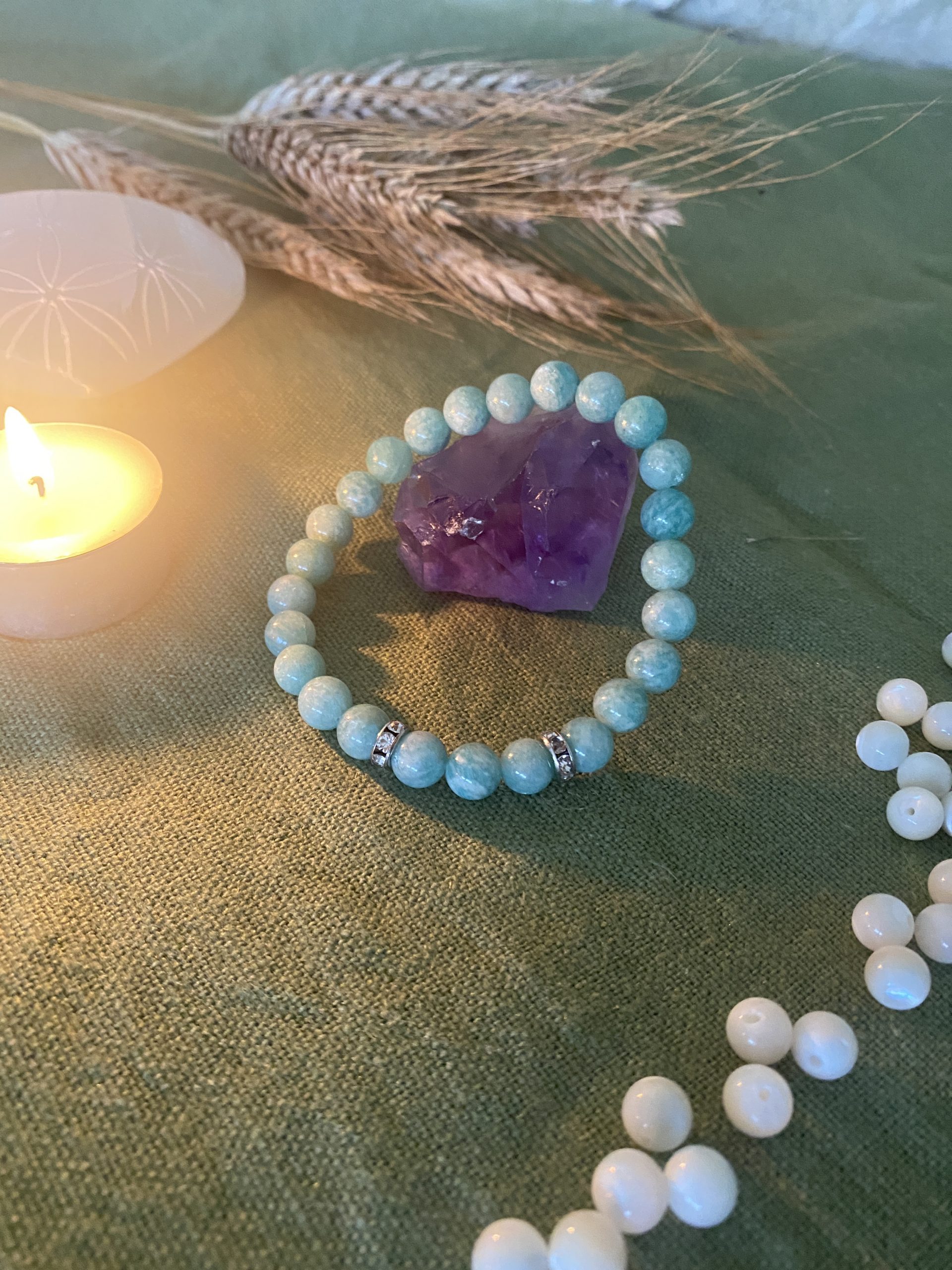 Bracelet en amazonite fabriqué par plume étoilée avec des pierres naturelles de 8 mm. Qualité AA.