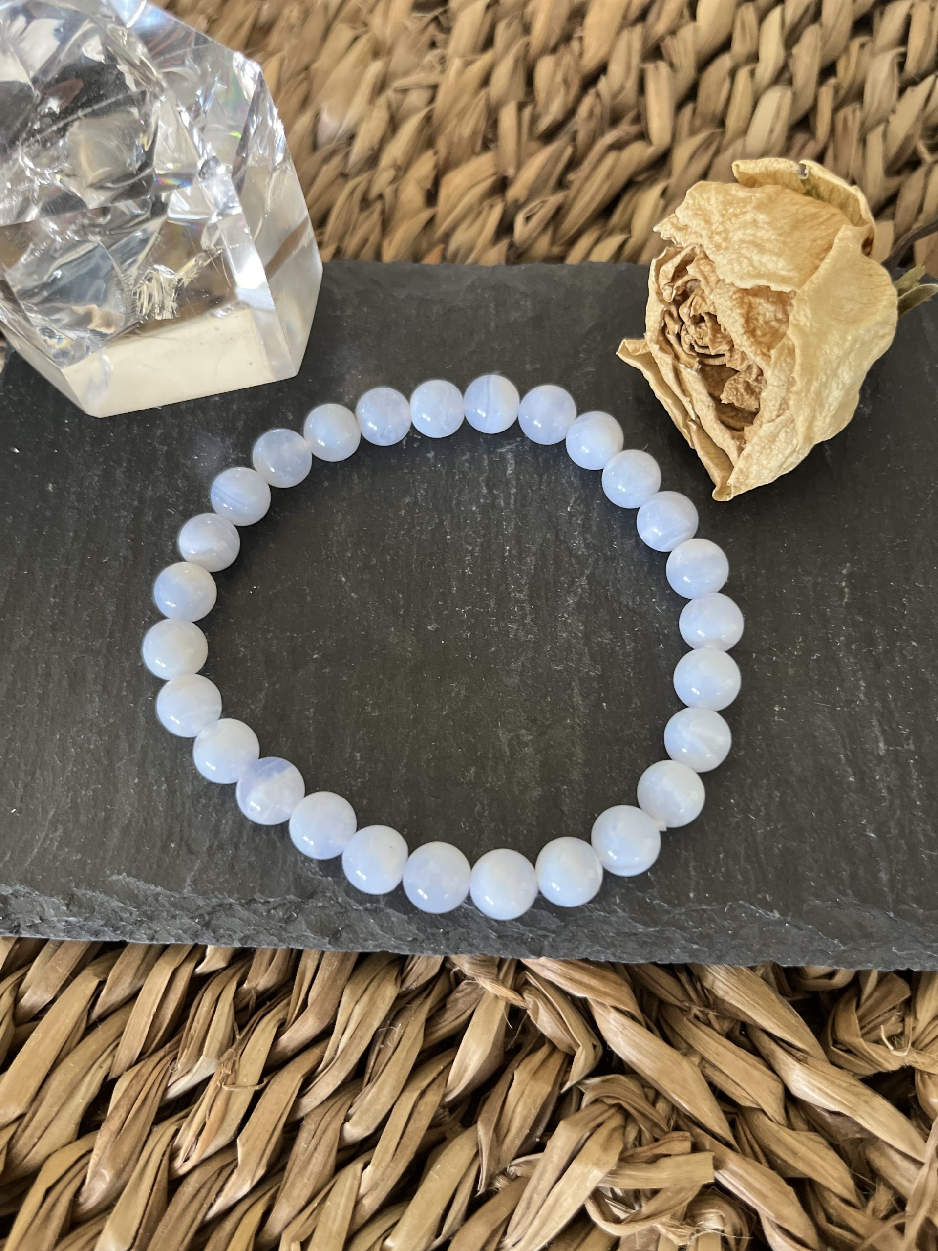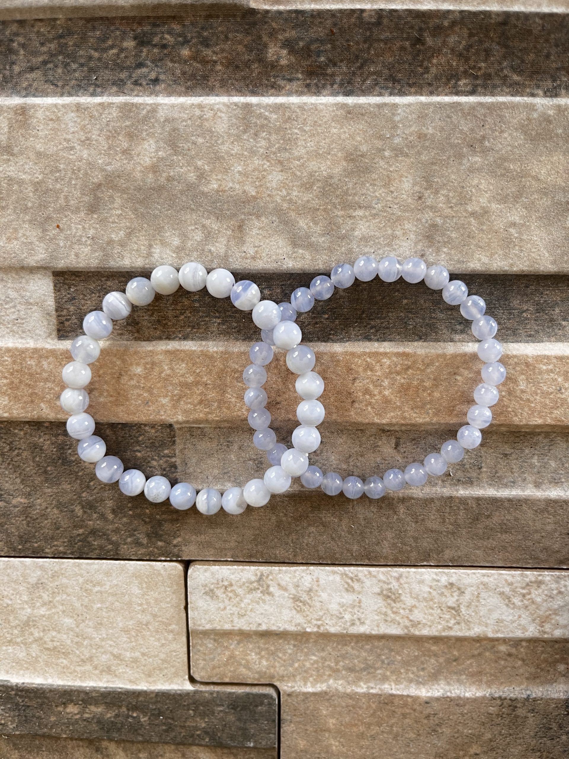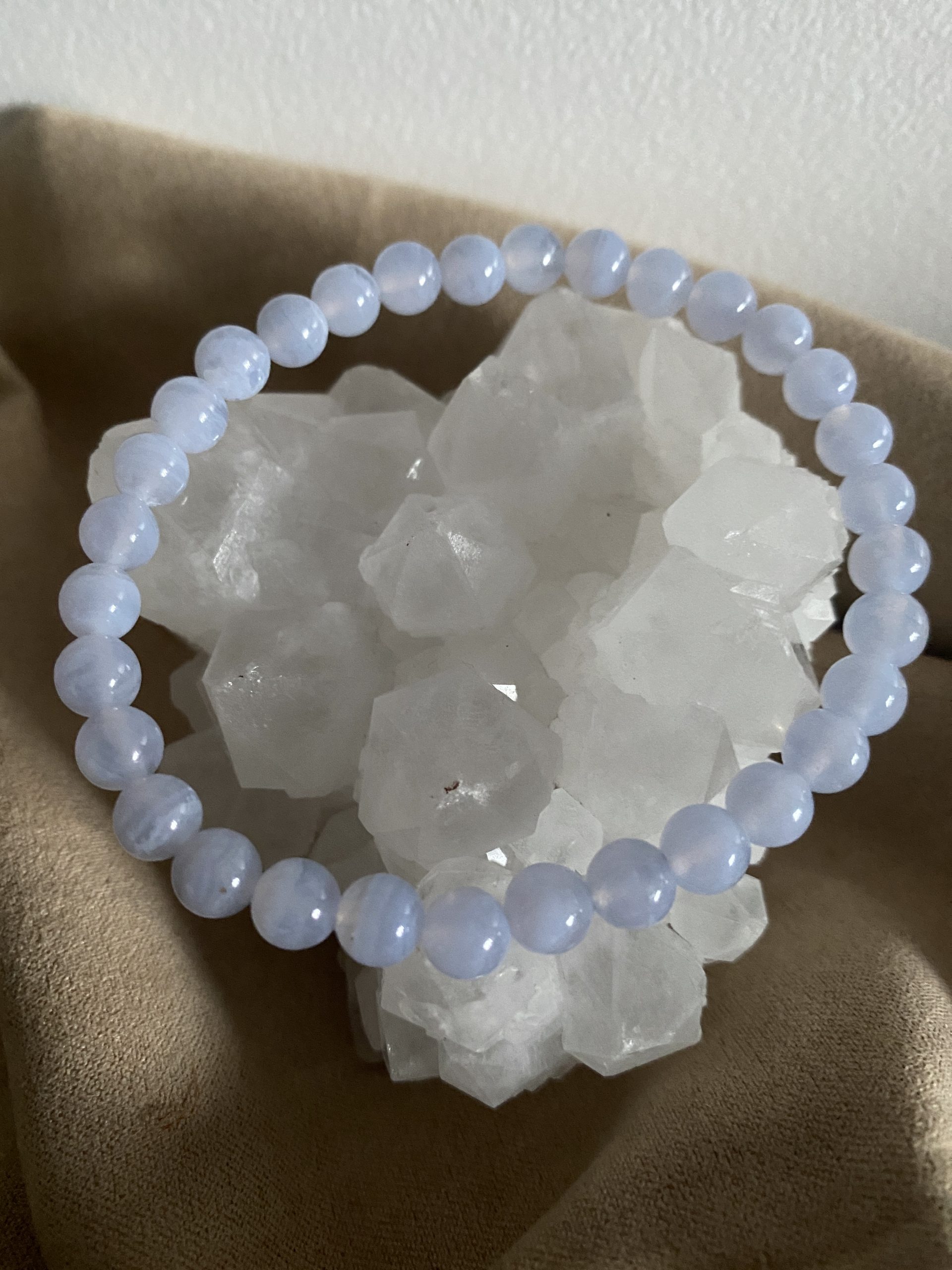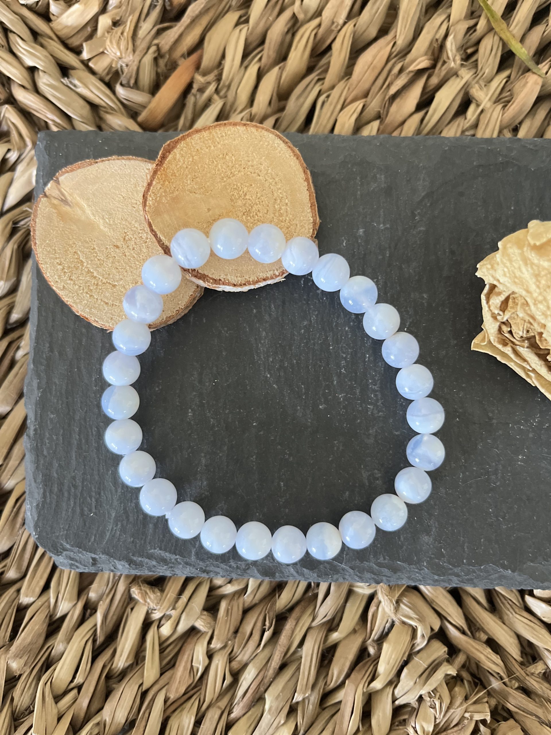 Bracelets en calcédoine fabriqué par plume étoilée avec des pierres naturelles de 6 et 7 mm.