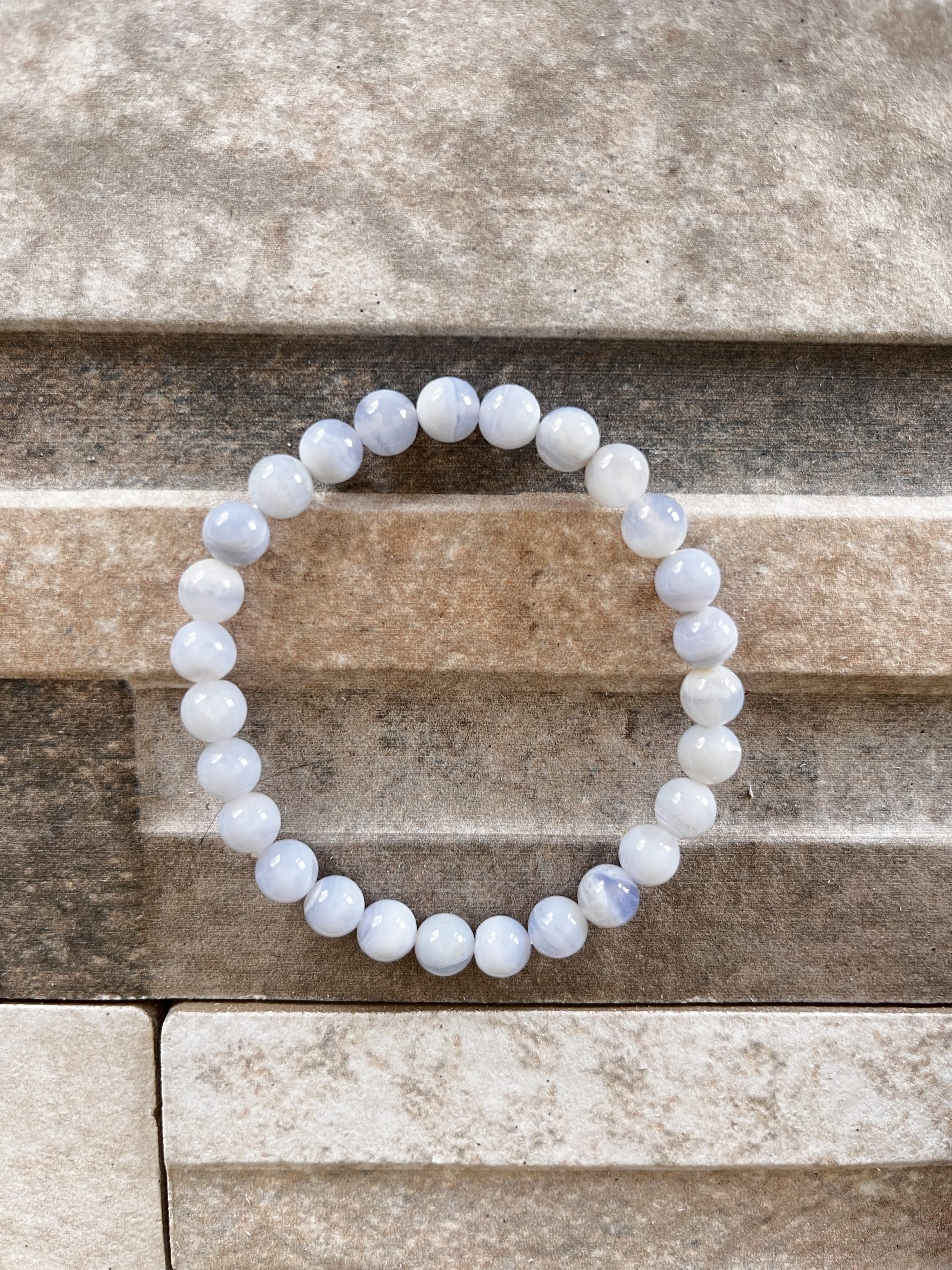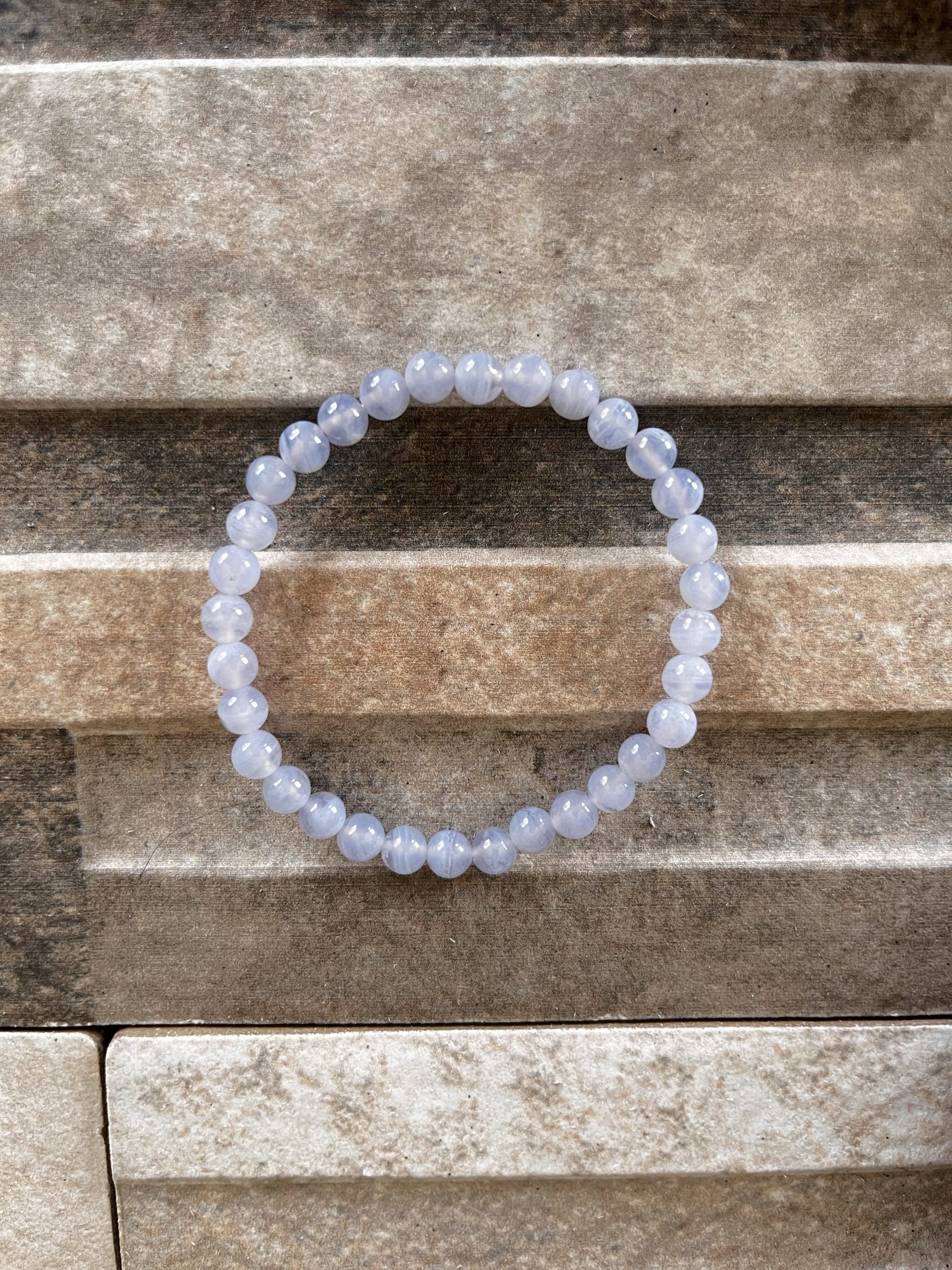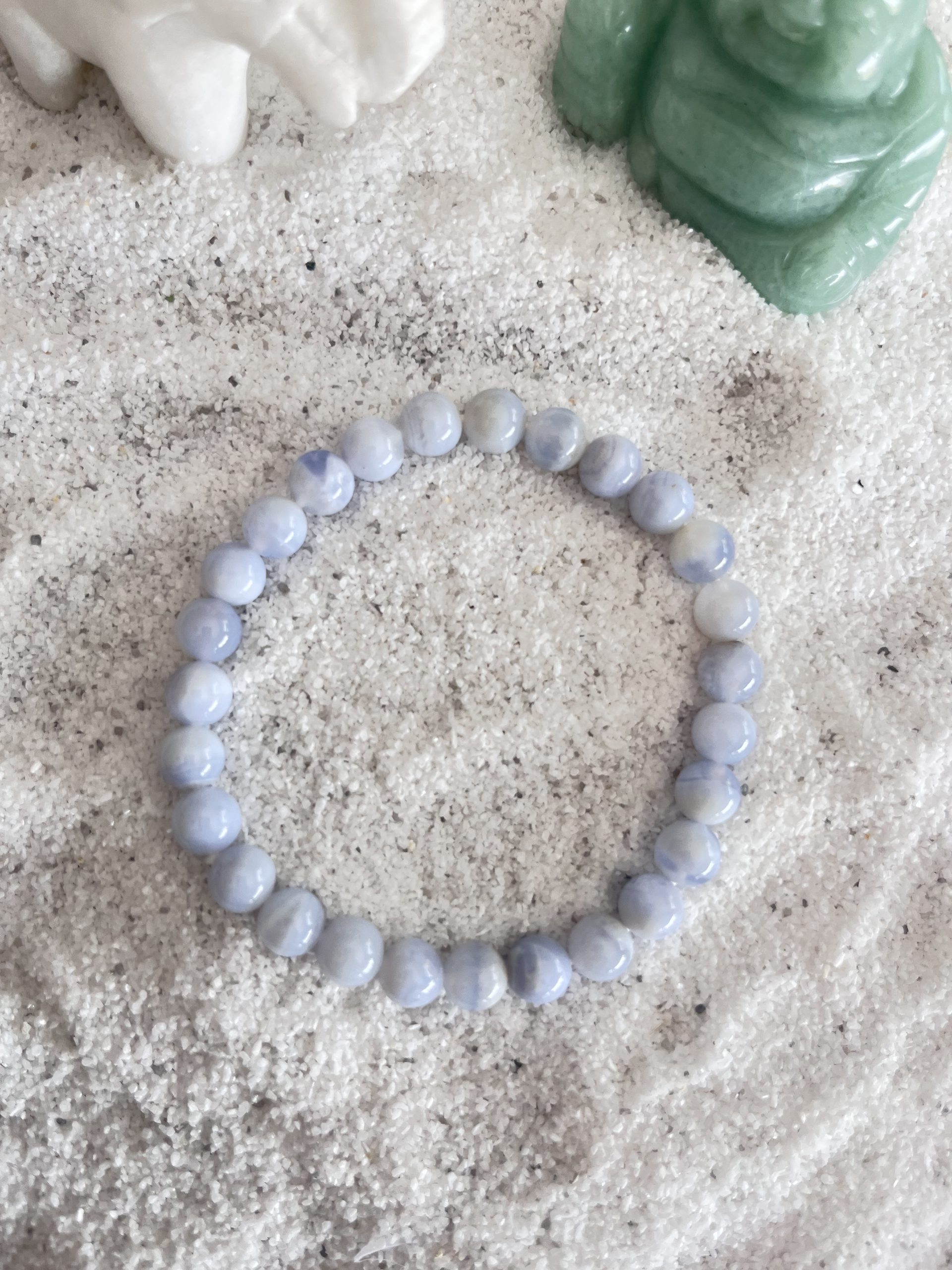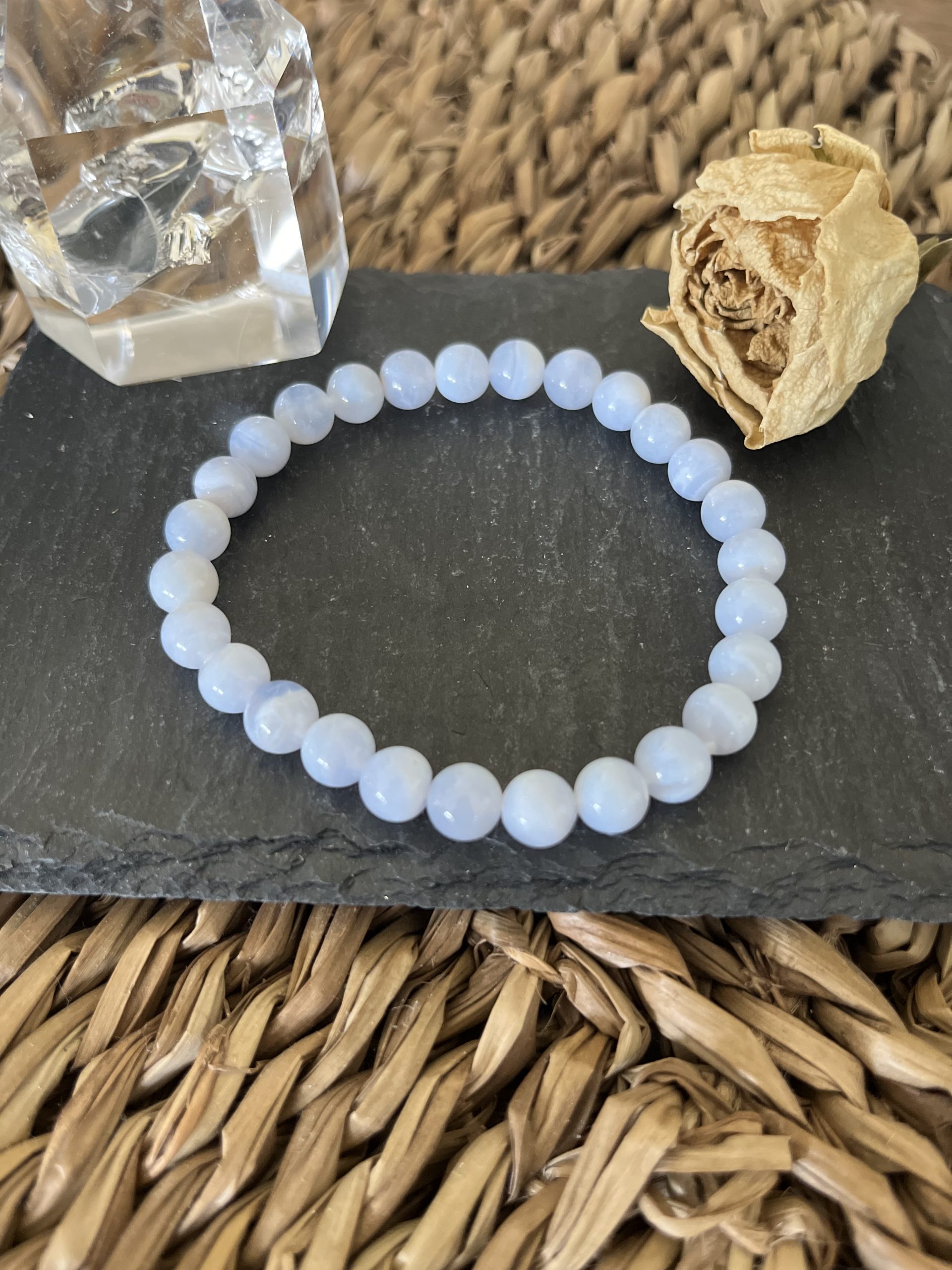 Bracelets en calcédoine fabriqué par plume étoilée avec des pierres naturelles de 6 et 7 mm.