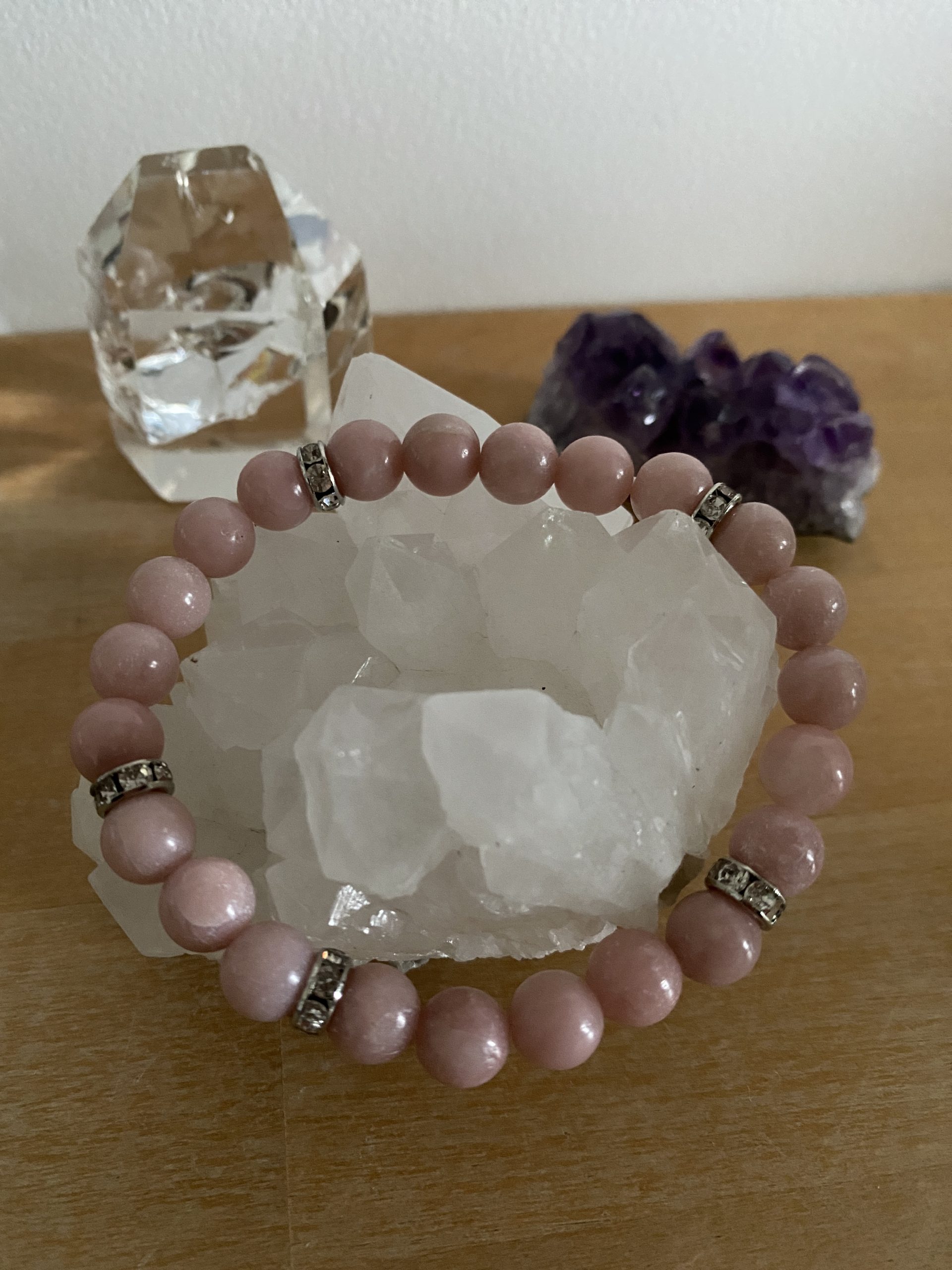 Bracelet en opale rose fabriqué par plume étoilée avec des pierres naturelles de 8 mm.