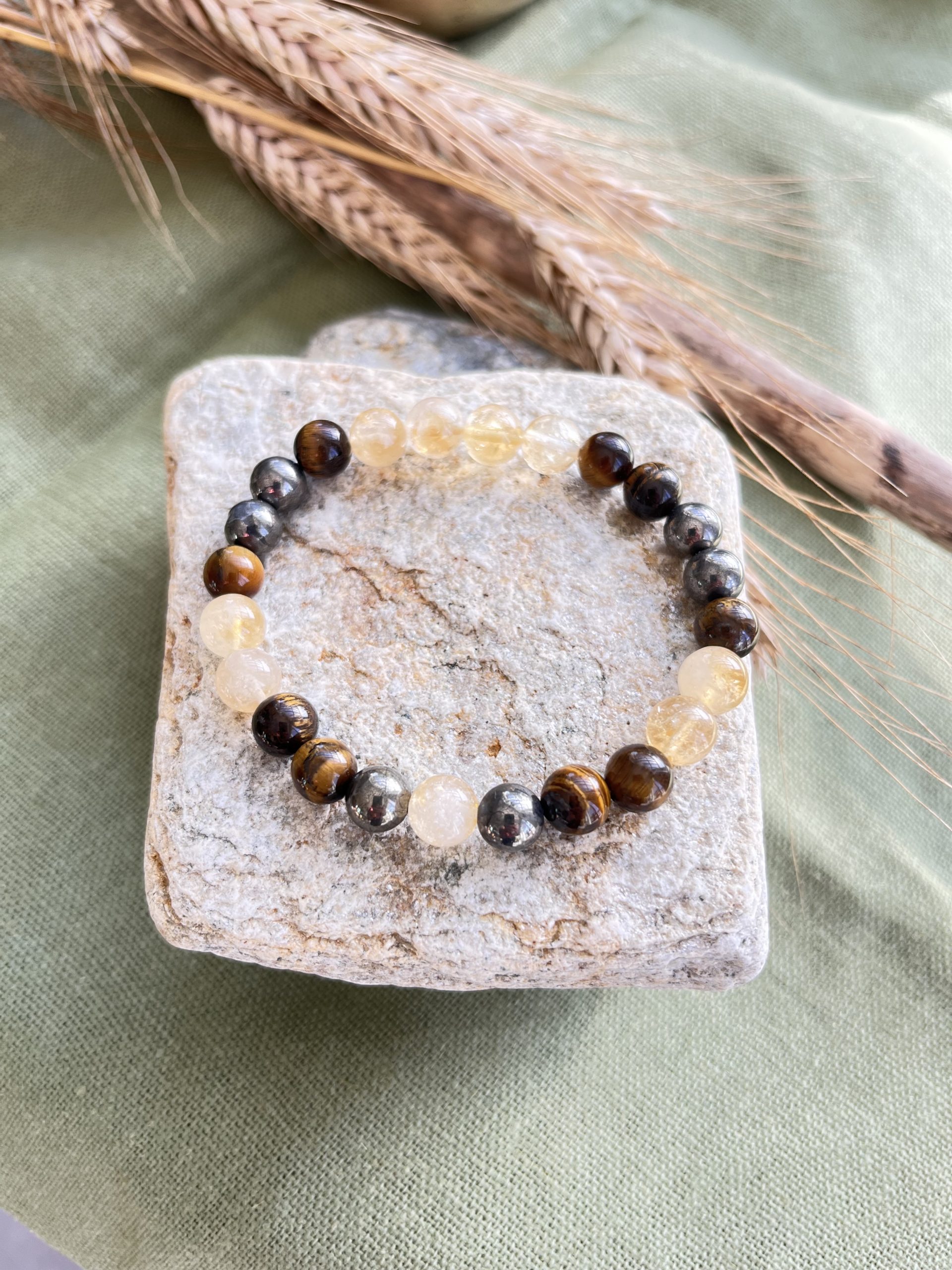 Bracelet Plexus Solaire (Manipura) – Pyrite • Citrine • Œil de Tigre.