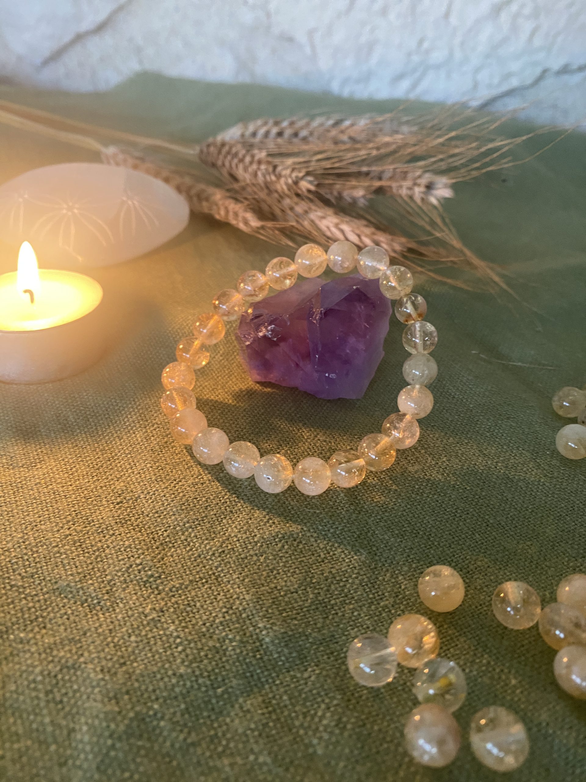 Bracelet en citrine chauffée en pierres naturelles de 8 mm. Qualité A+.