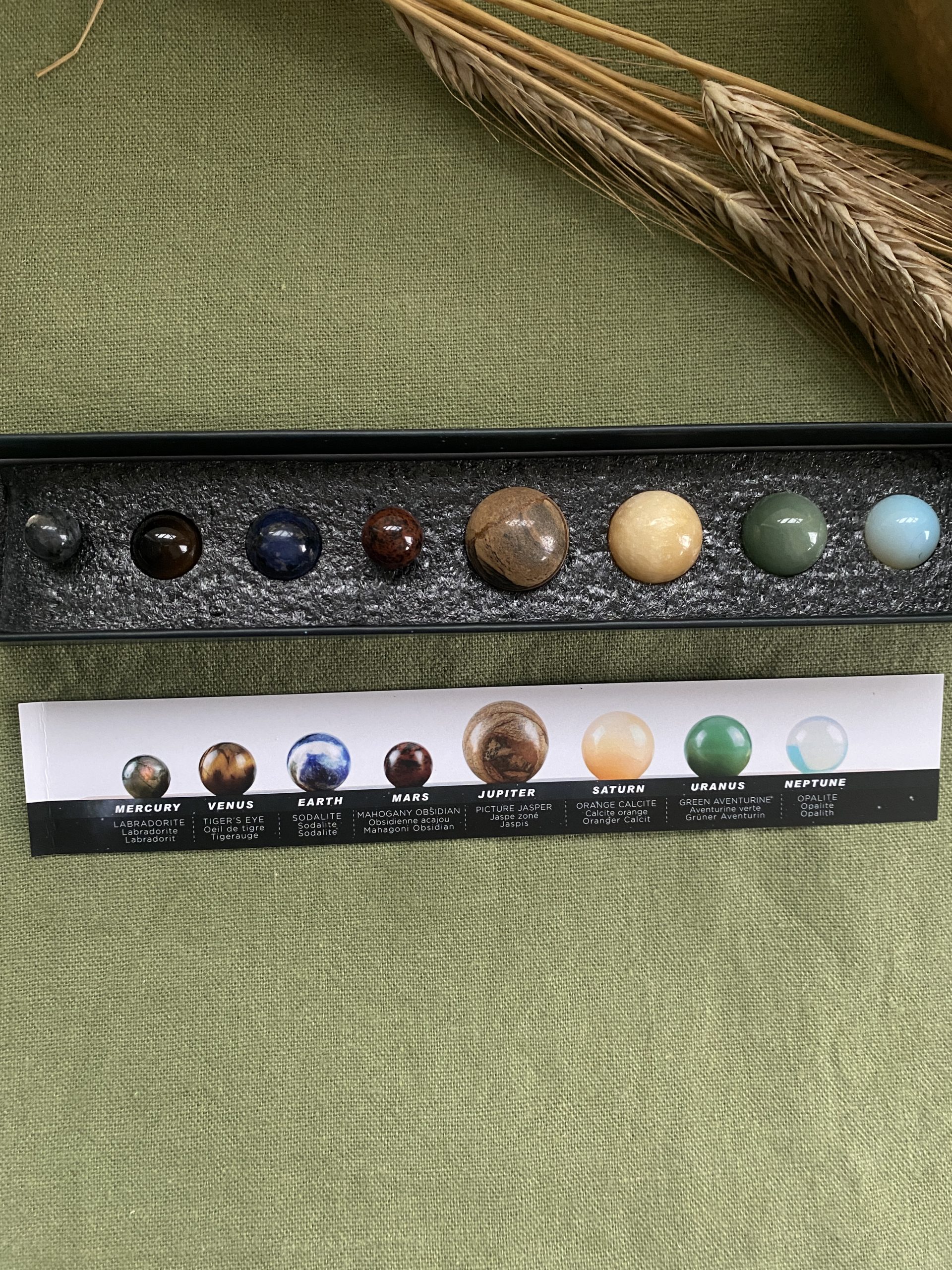 Voyagez à travers le système solaire avec notre magnifique coffret cadeau Minéraux. Cet ensemble comprend 8 sphères de pierres précieuses représentant différentes planètes comme la labradorite pour Mercure et l’œil de tigre pour Vénus. Parfait pour les passionnés d’astrologie et les collectionneurs.