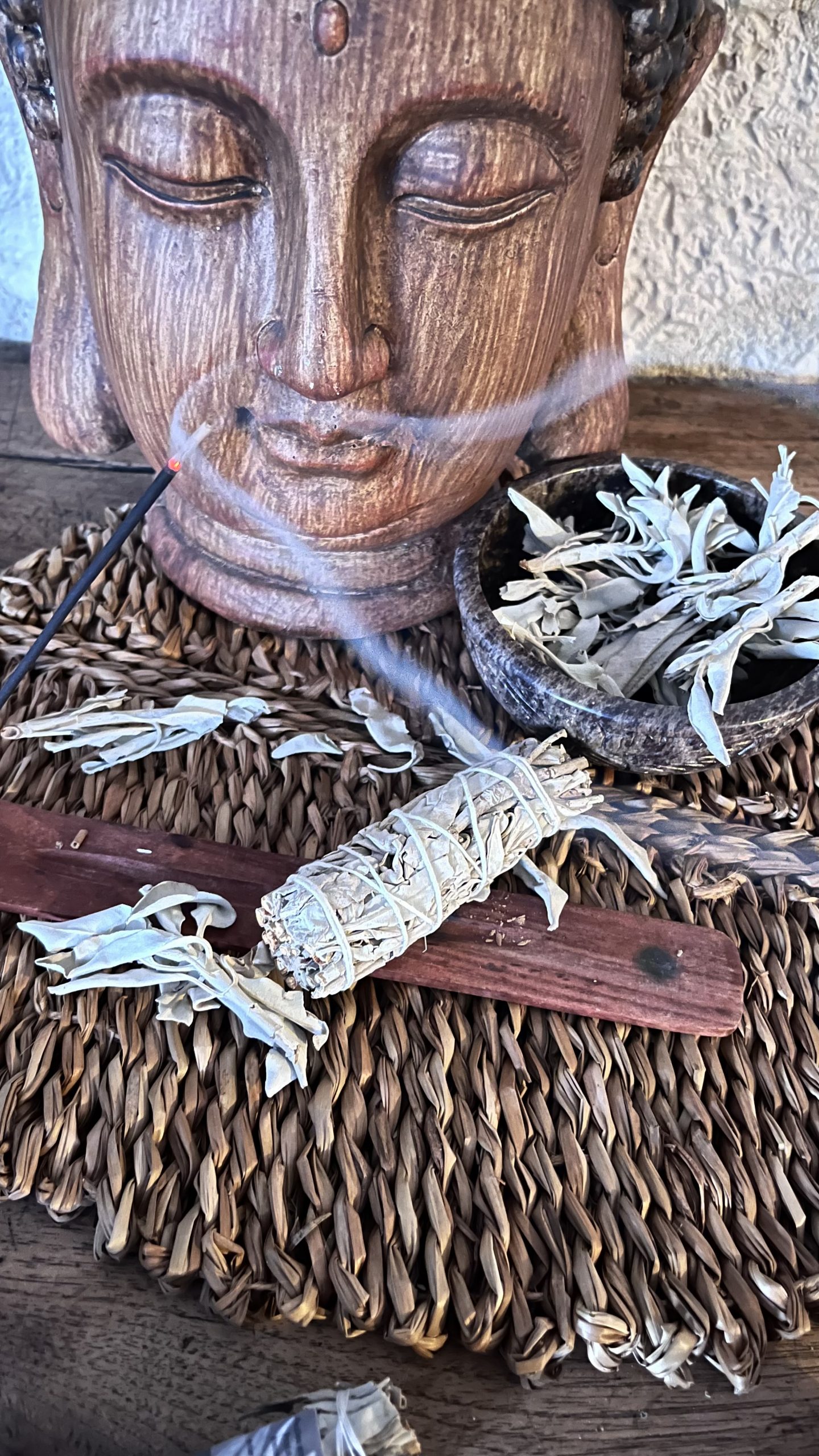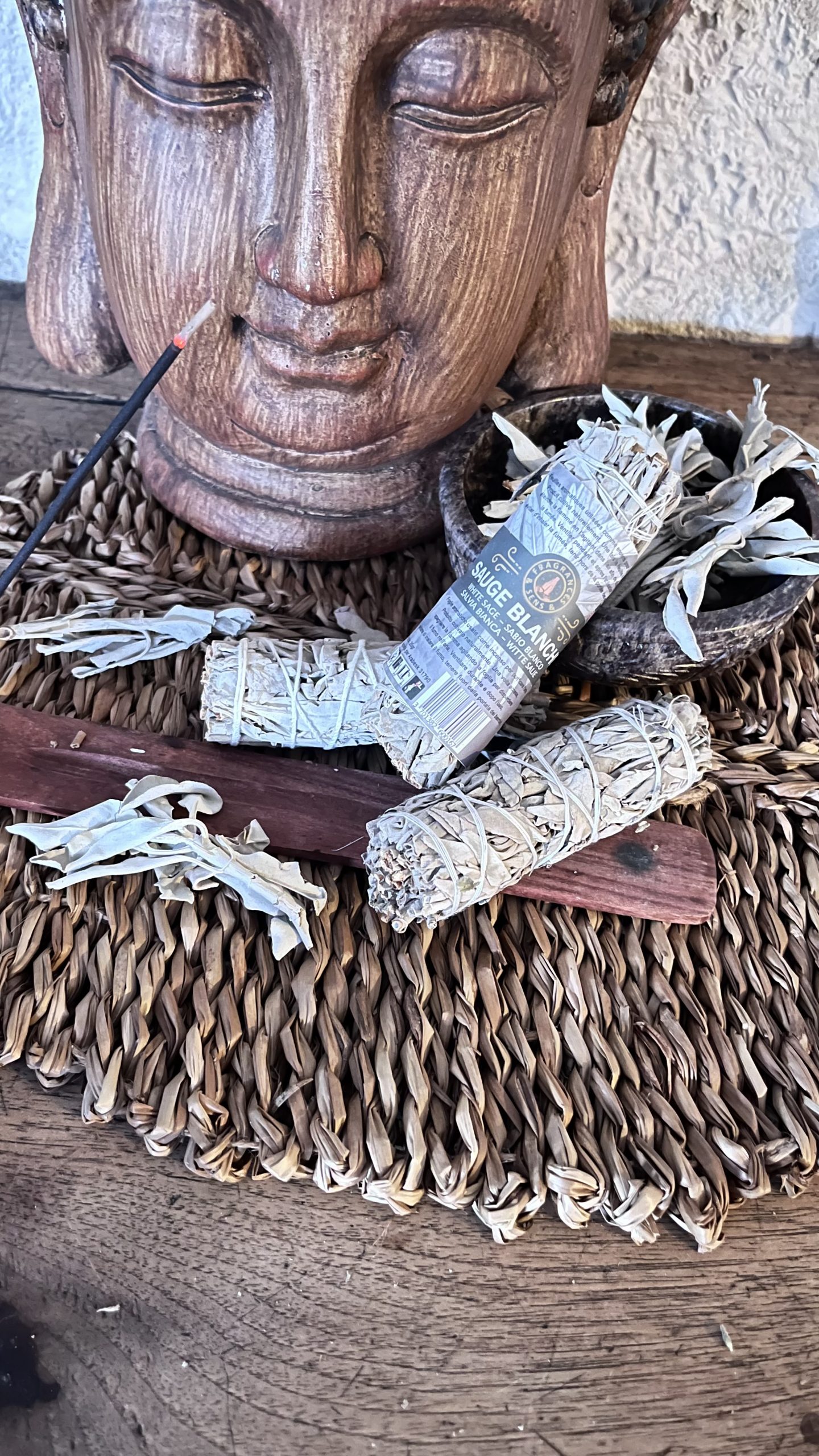Un fagot est composé de feuilles de sauge blanche séchées et roulées pour une fumigation optimale.