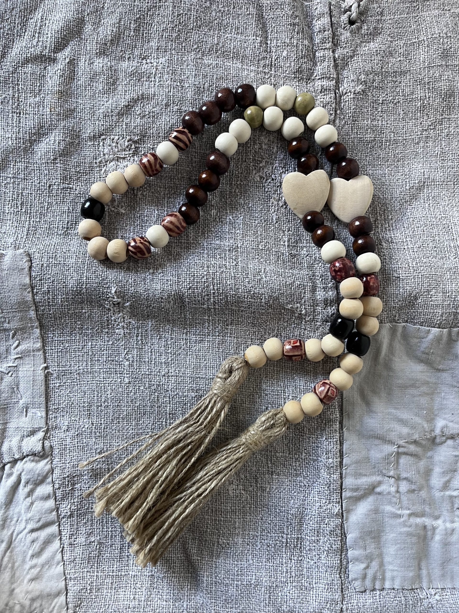 Guirlande de perles en bois – Décoration bohème et naturelle.