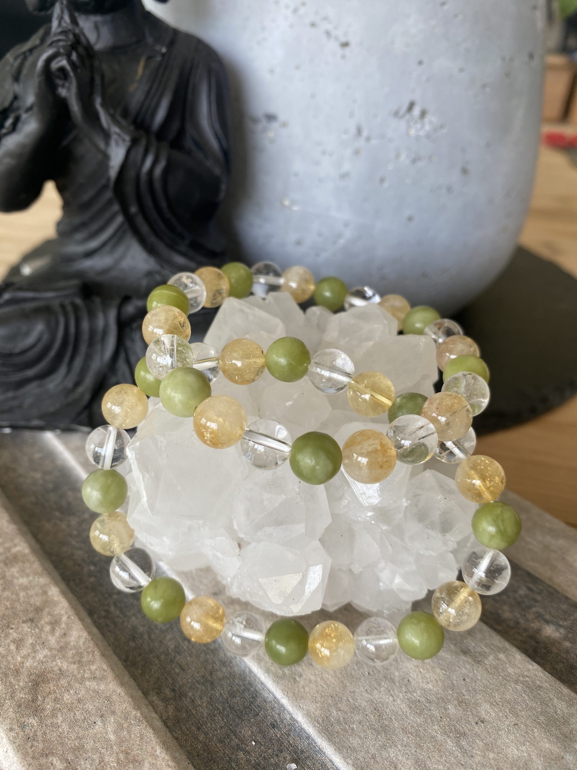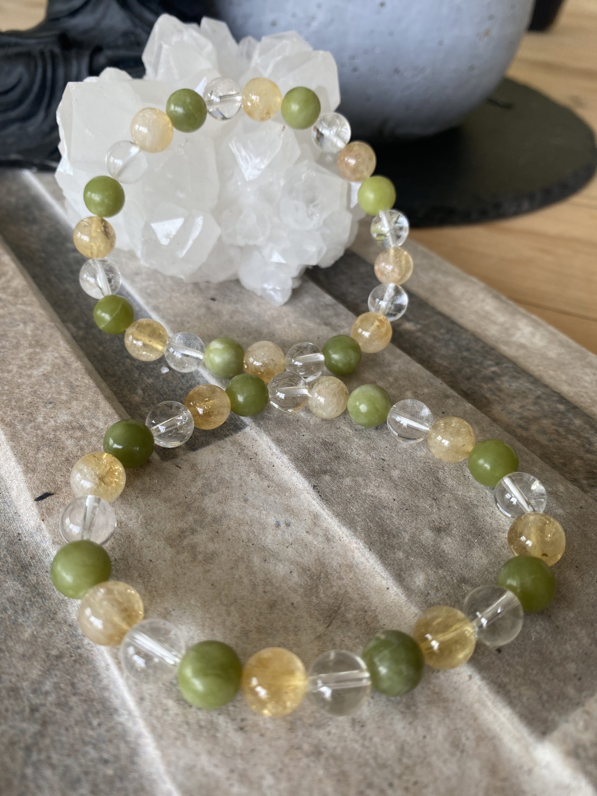 – Manifestation et réussite : Jade et citrine ensemble attirent prospérité et chance, tandis que le cristal de roche amplifie ces intentions.