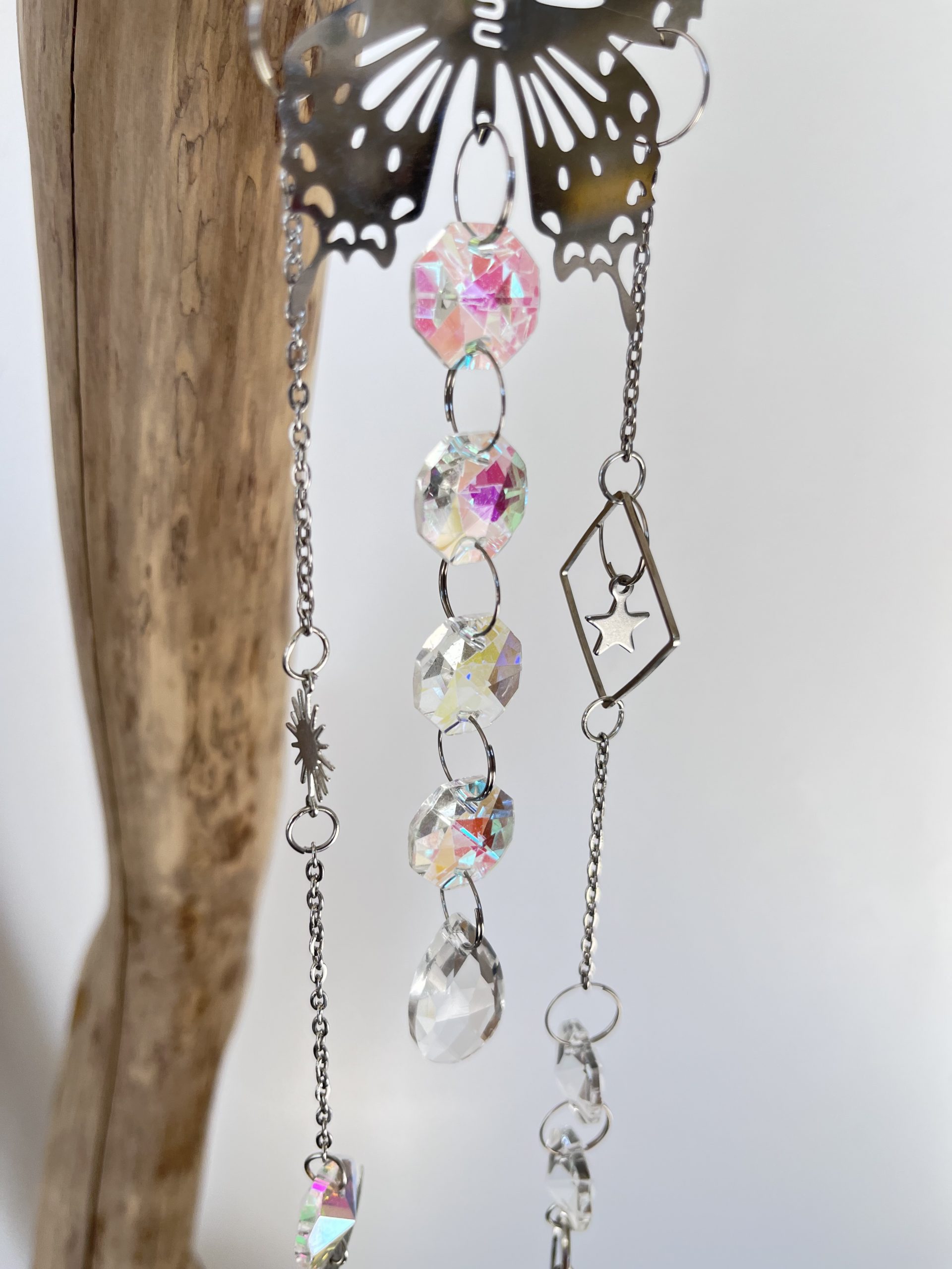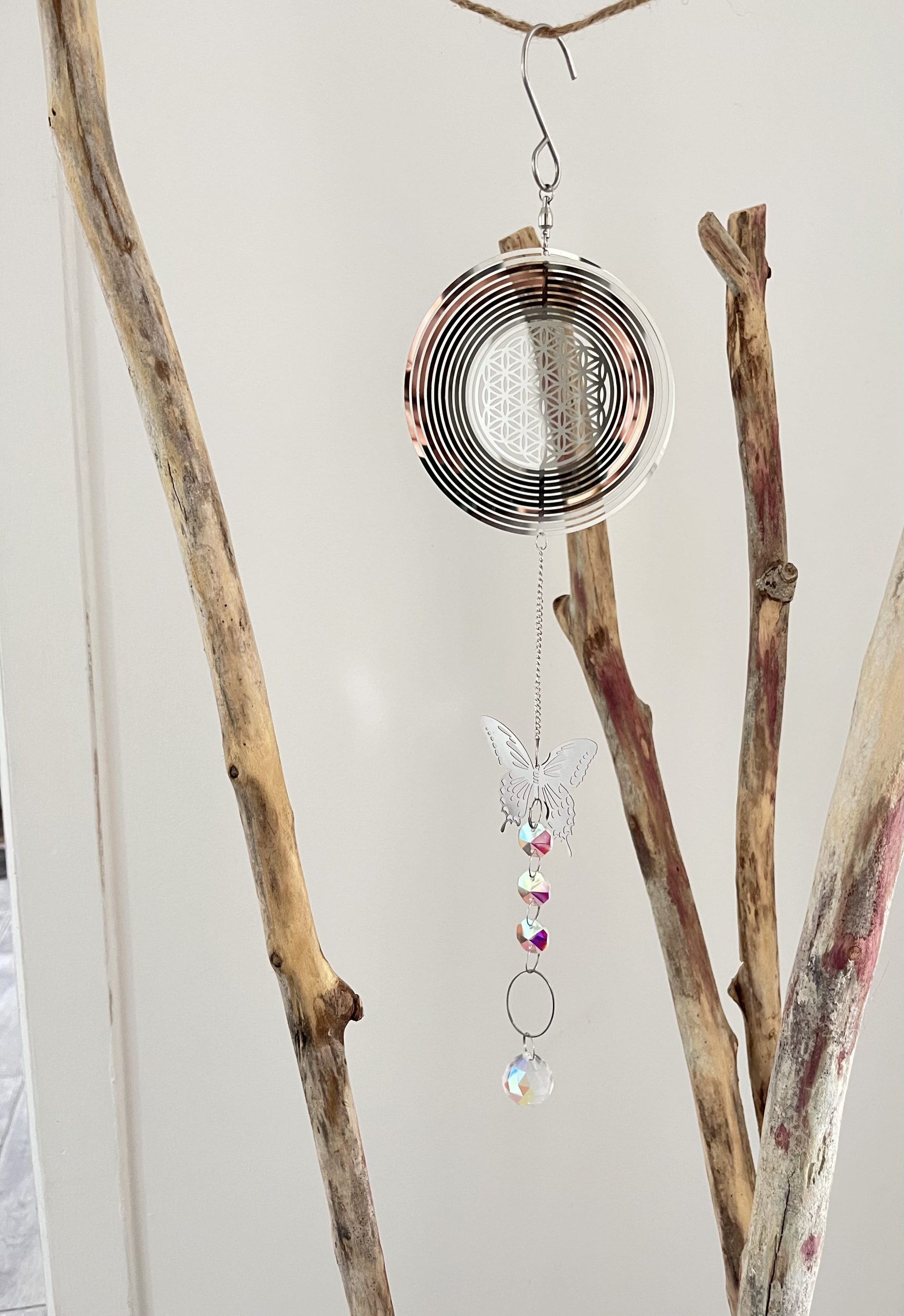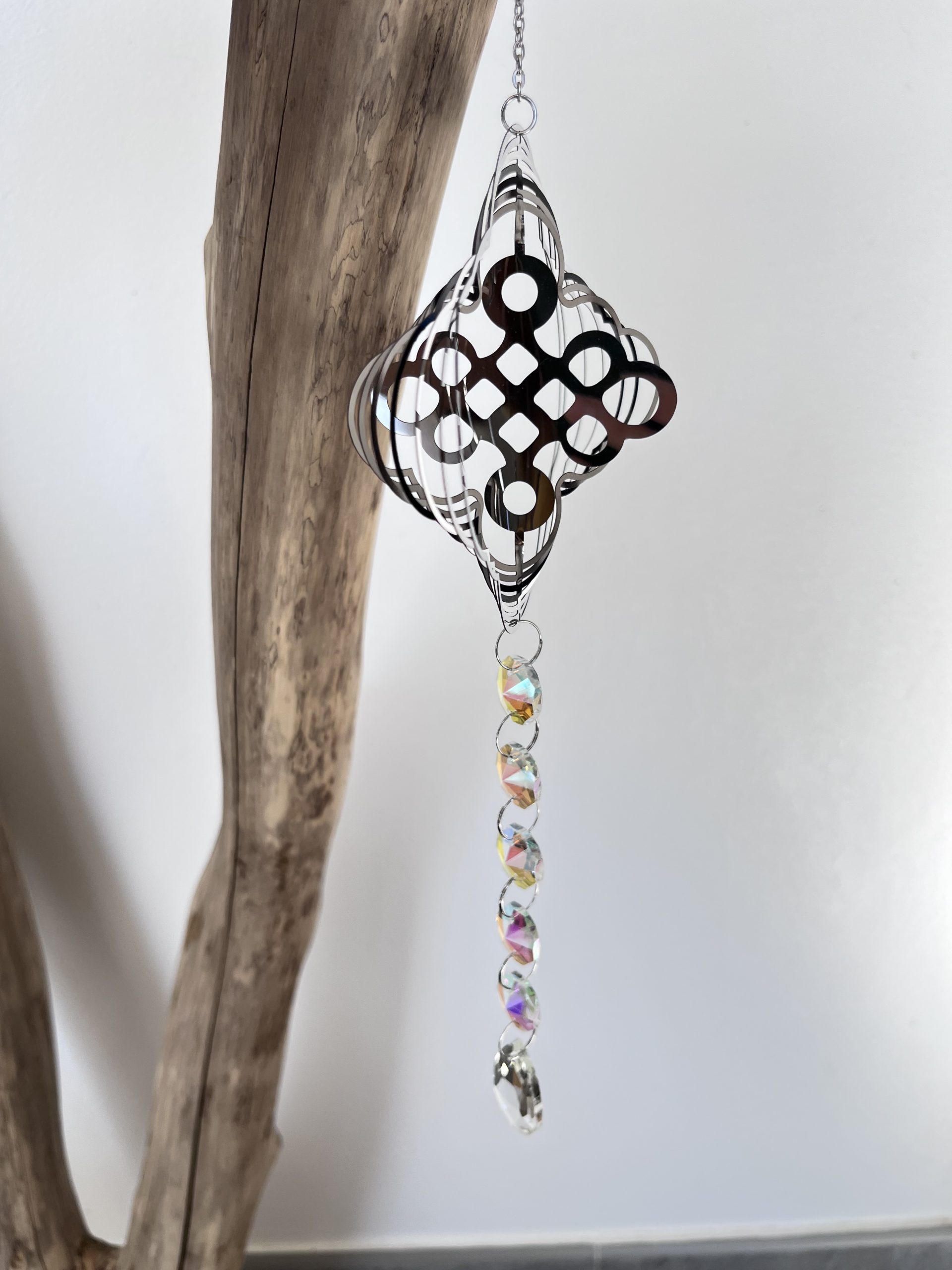 Mobile 3D en Acier Inoxydable avec Prisme – Attrape-Soleil Moderne pour Jardin ou Intérieur