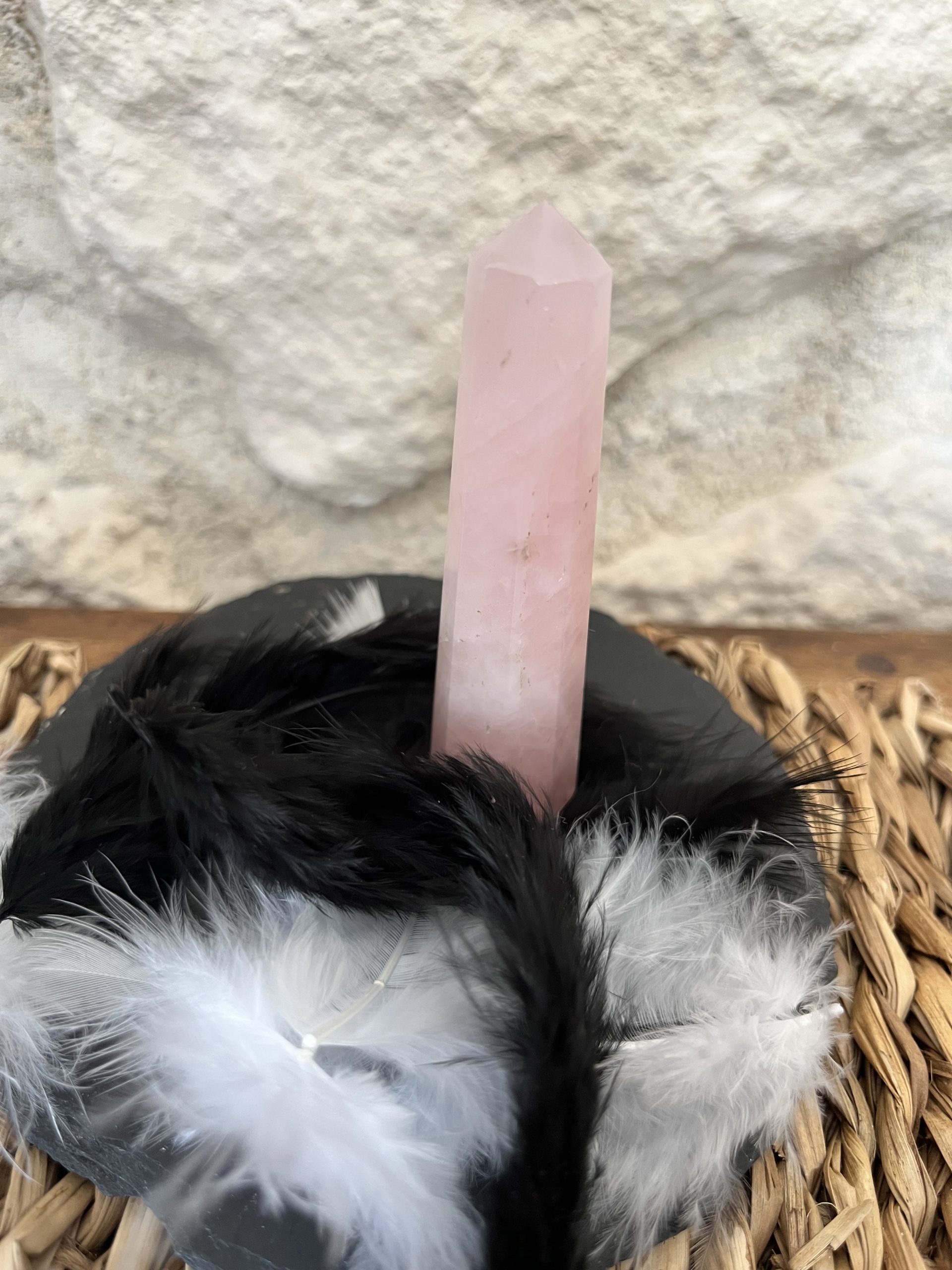 quartz rose : favorise l’amour, la confiance en soi, la douceur et la guérison émotionnelle.