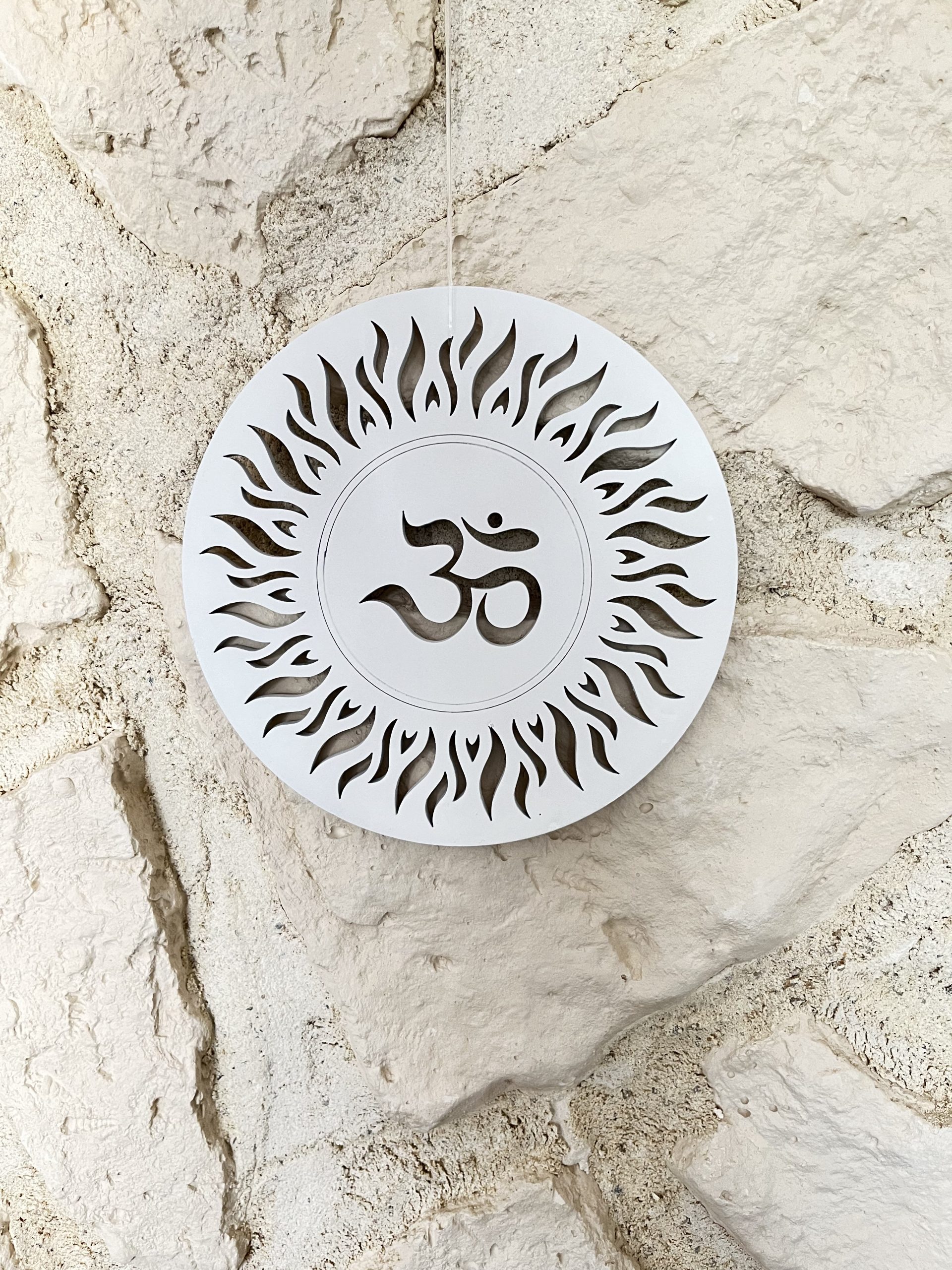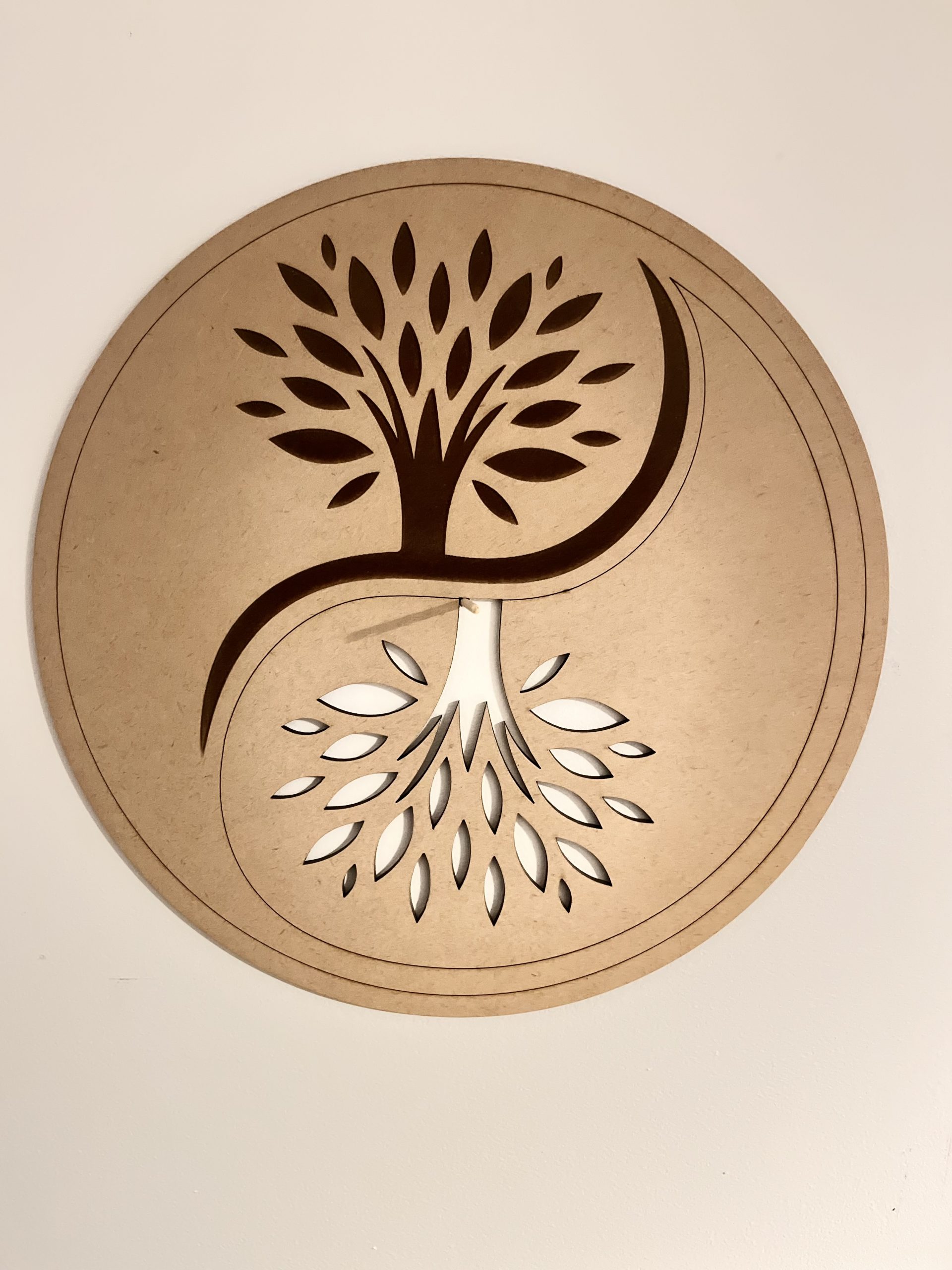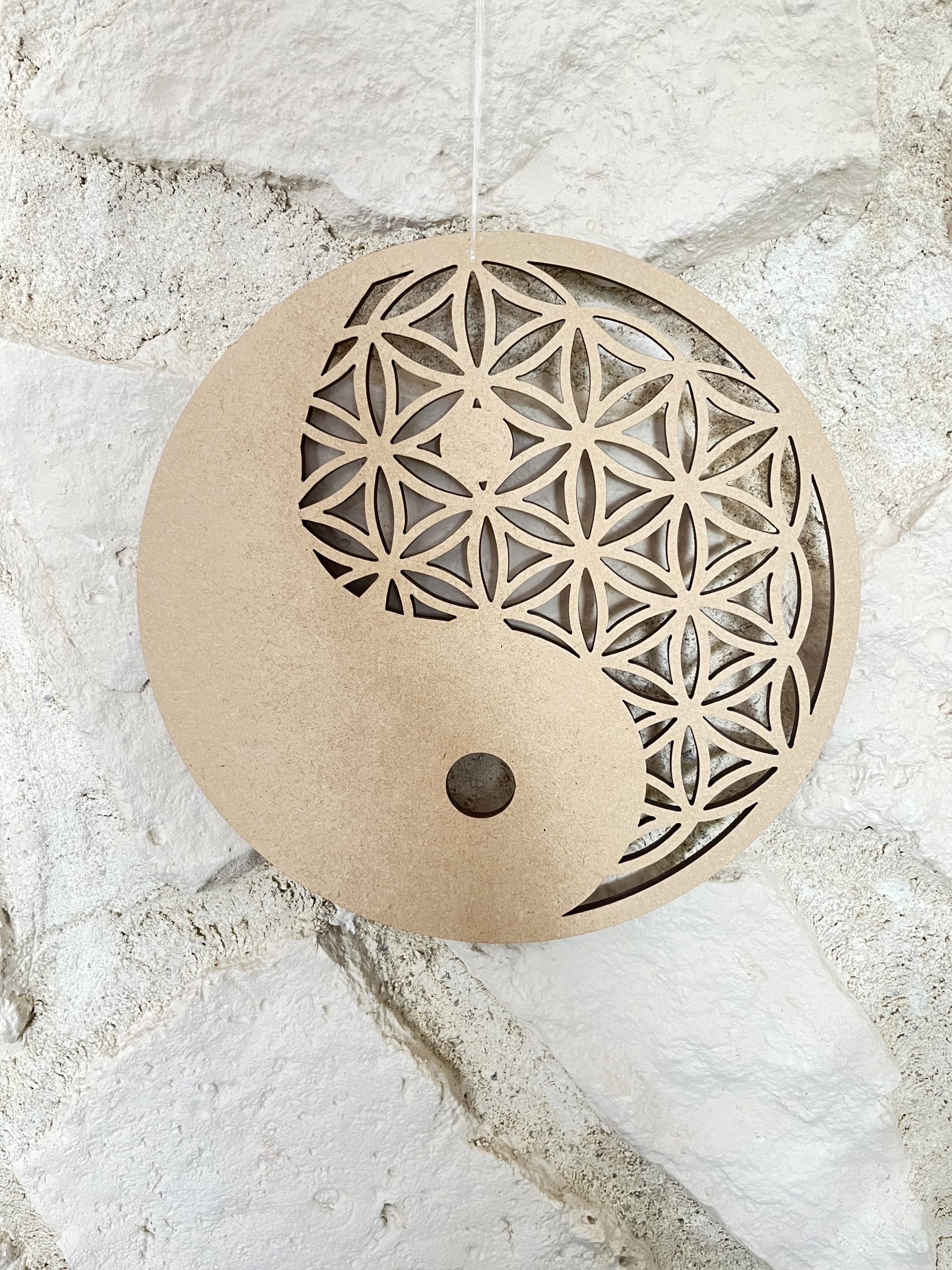 D : Plaque de rechargement en bois fleur de vie Ying Yang naturel 20 cm.