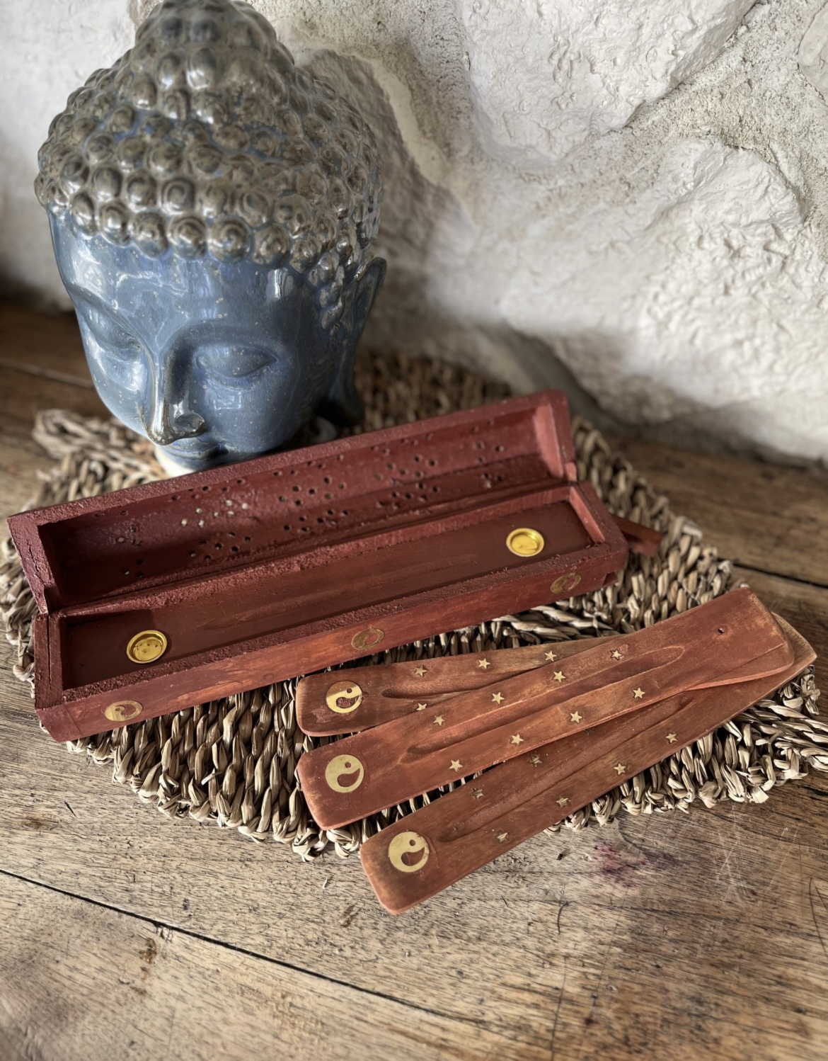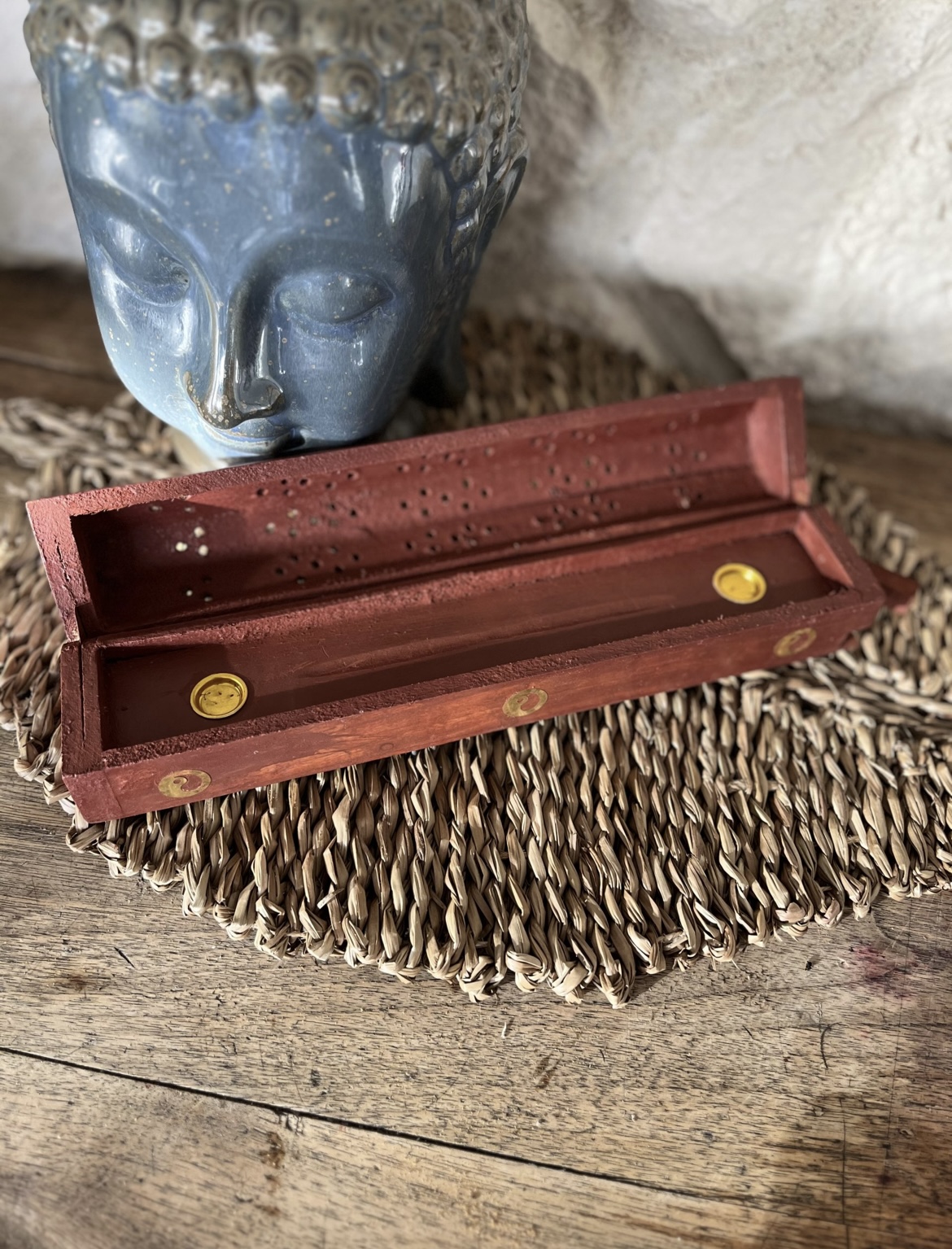 Doté sur les 2 extrémités de trous pour placer les bâtons  d’encens, les cendres tombent directement dans la boite lors de la combustion.
